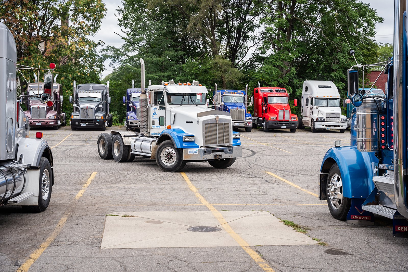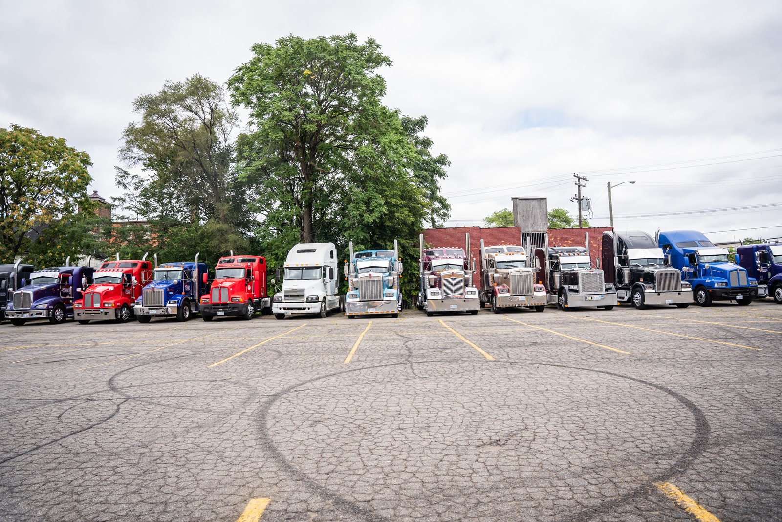 As the rigs leave the parking lot, they all honk their horns.