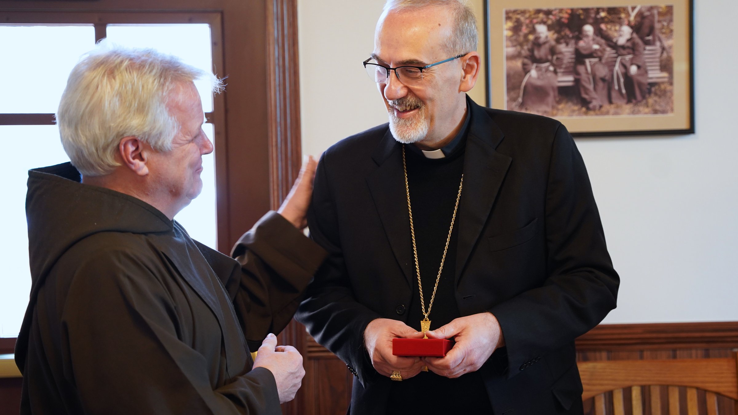 Fr. Costello gave Cardinal Pizzaballa a first-class relic of Blessed Solanus to take back to the Holy Land "as a sign of our fraternity," he said.