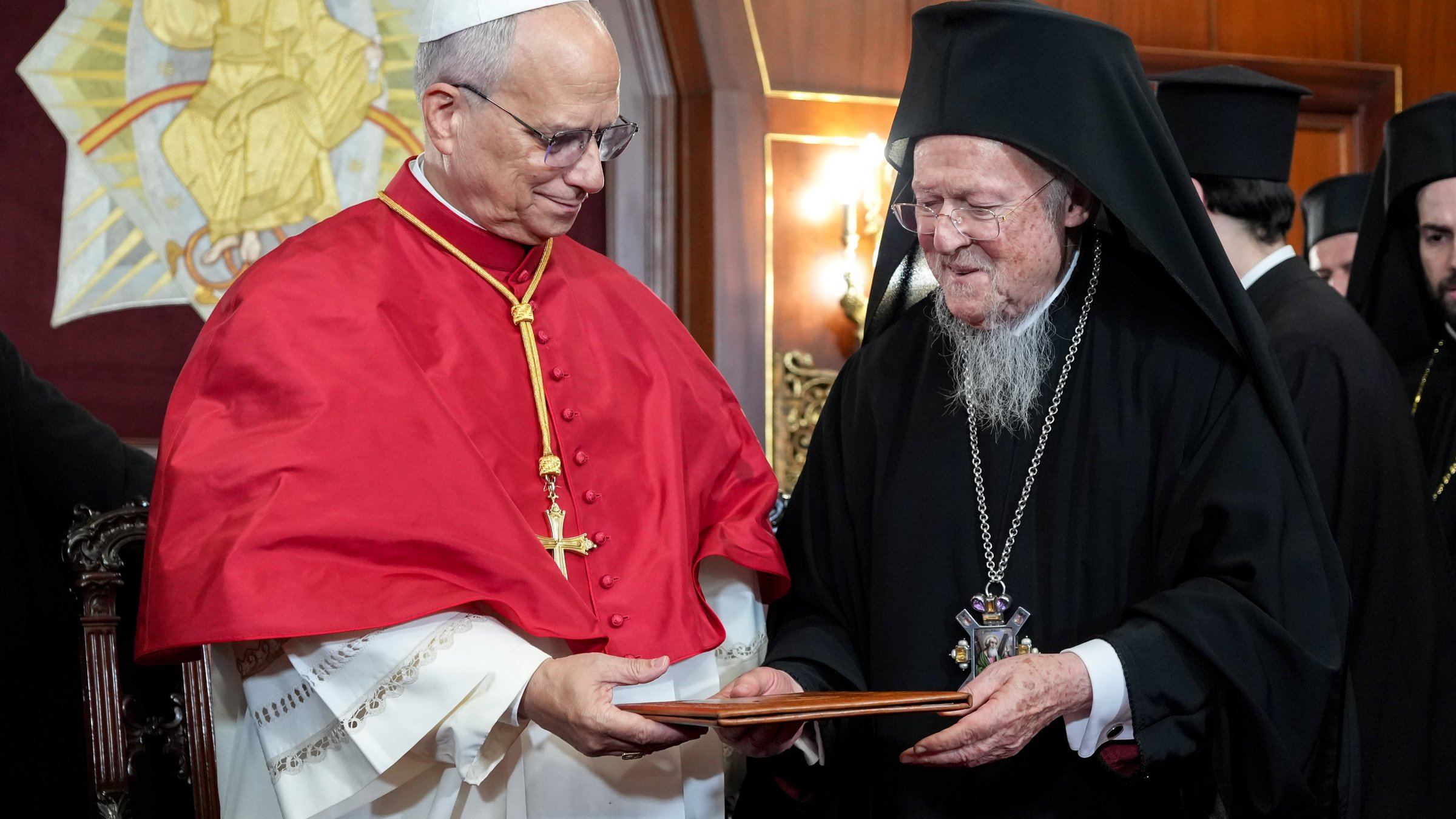 Pope Leo joined Patriarch Bartholomew again in the early evening in the Patriarchal Cathedral of St. George for a doxology prayer service of praise to God.