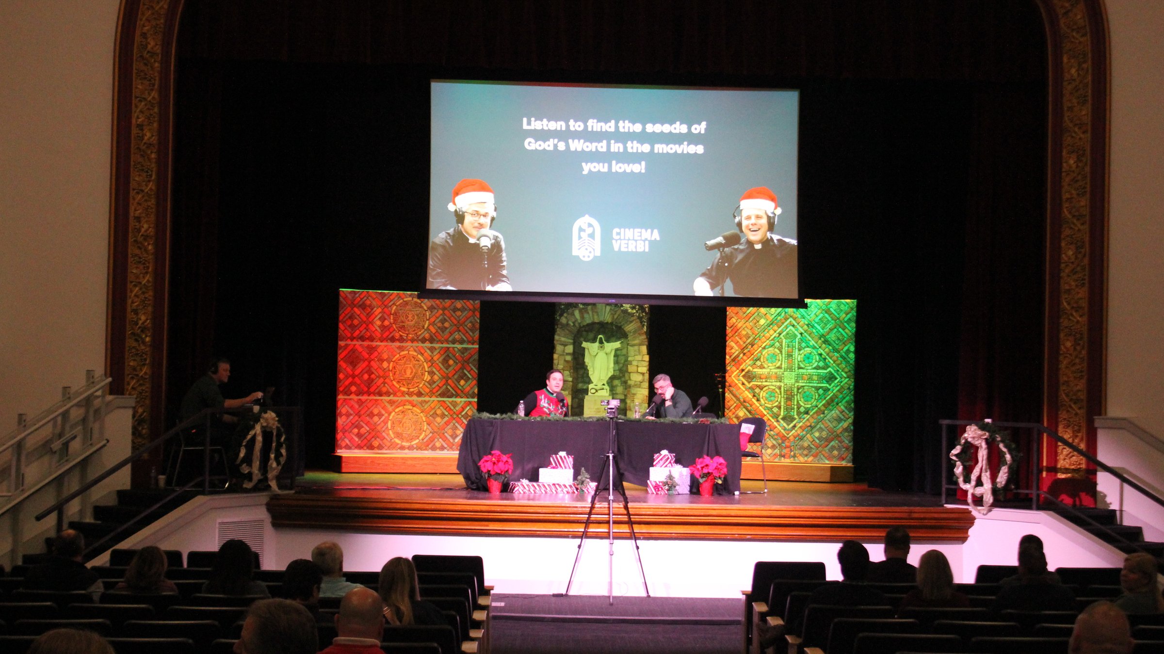 DETROIT — Christmas sweaters, festive decorations, and homemade Christmas cookies set the tone for a special evening Dec. 20 at Sacred Heart Major Seminary. Guests of all ages enjoyed “Movie Night with Detroit Catholic Campus Ministry (DCCM),” watching the classic holiday film "It's a Wonderful Life" and participating in a live recording of the Archdiocese of Detroit’s own “Cinema Verbi” podcast.