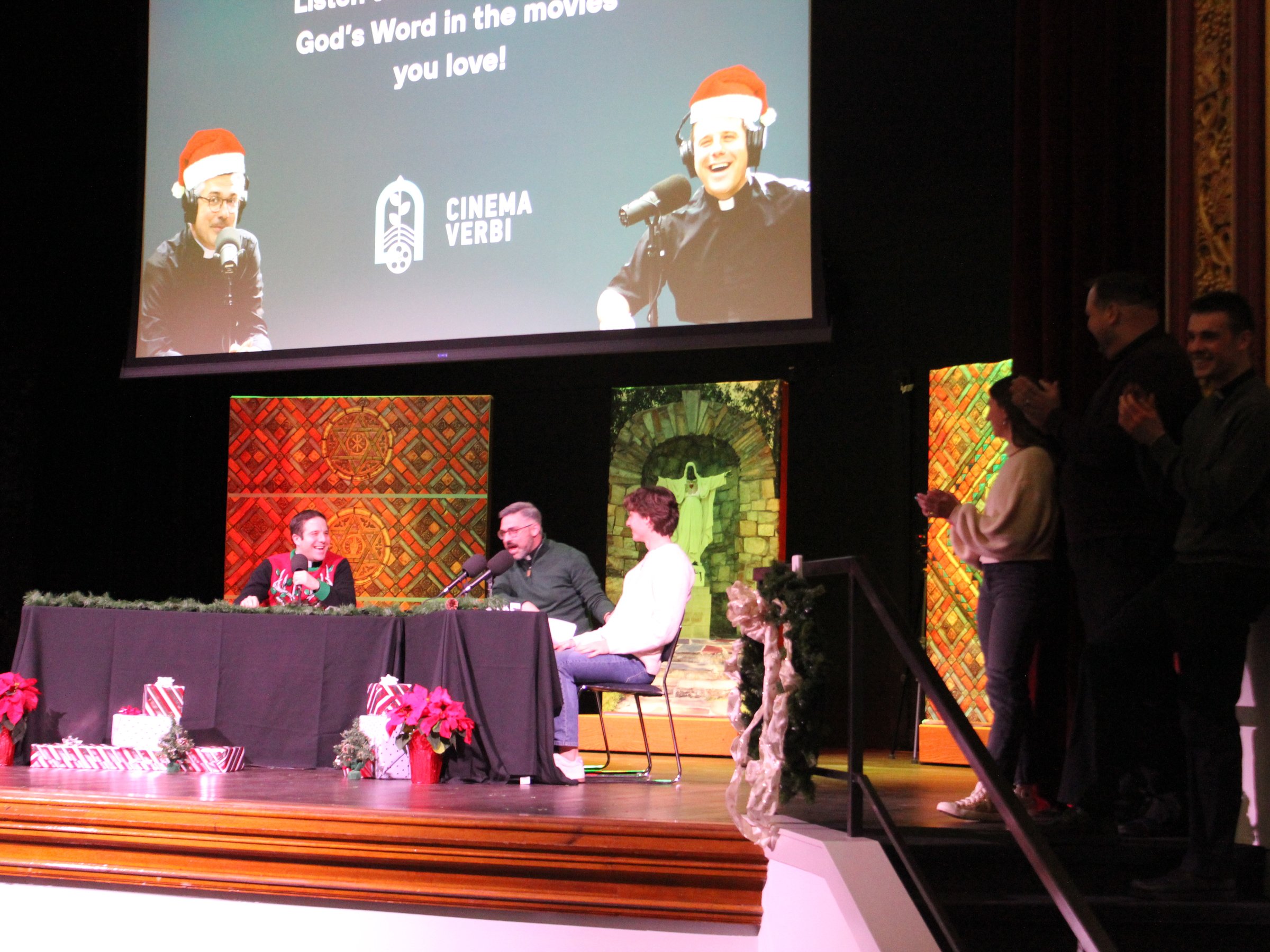 When the movie ended, Fr. Hood and Fr. Meldrum recorded the second half of their podcast, discussing the themes of hope and wonder in the film. Before ending the recording, they challenged four audience members to a round of trivia on stage.