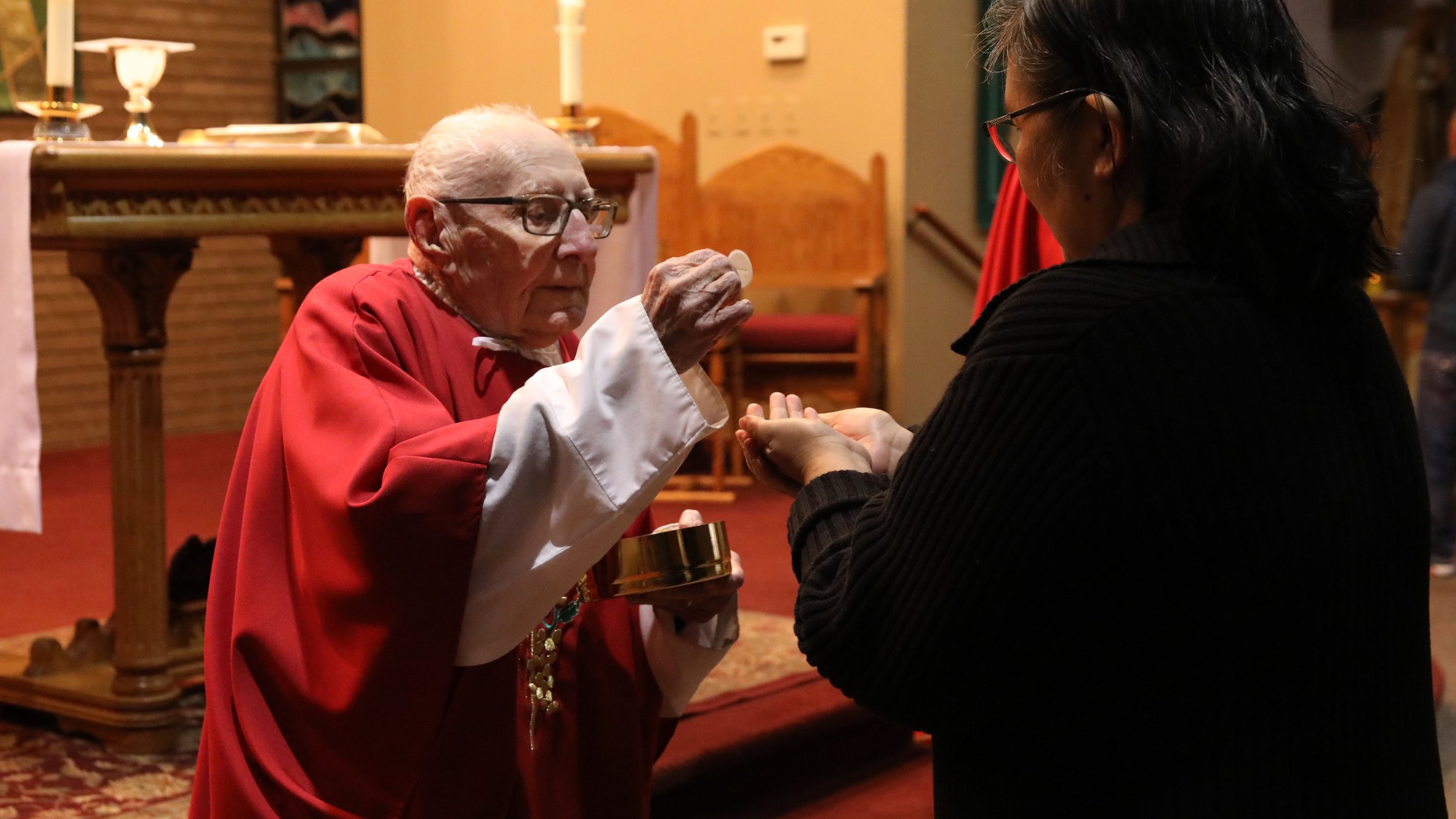 Clare Girard said the 2020 pandemic ended her father’s active service, but not before he read the Gospel during Mass for his 100th birthday in 2018.