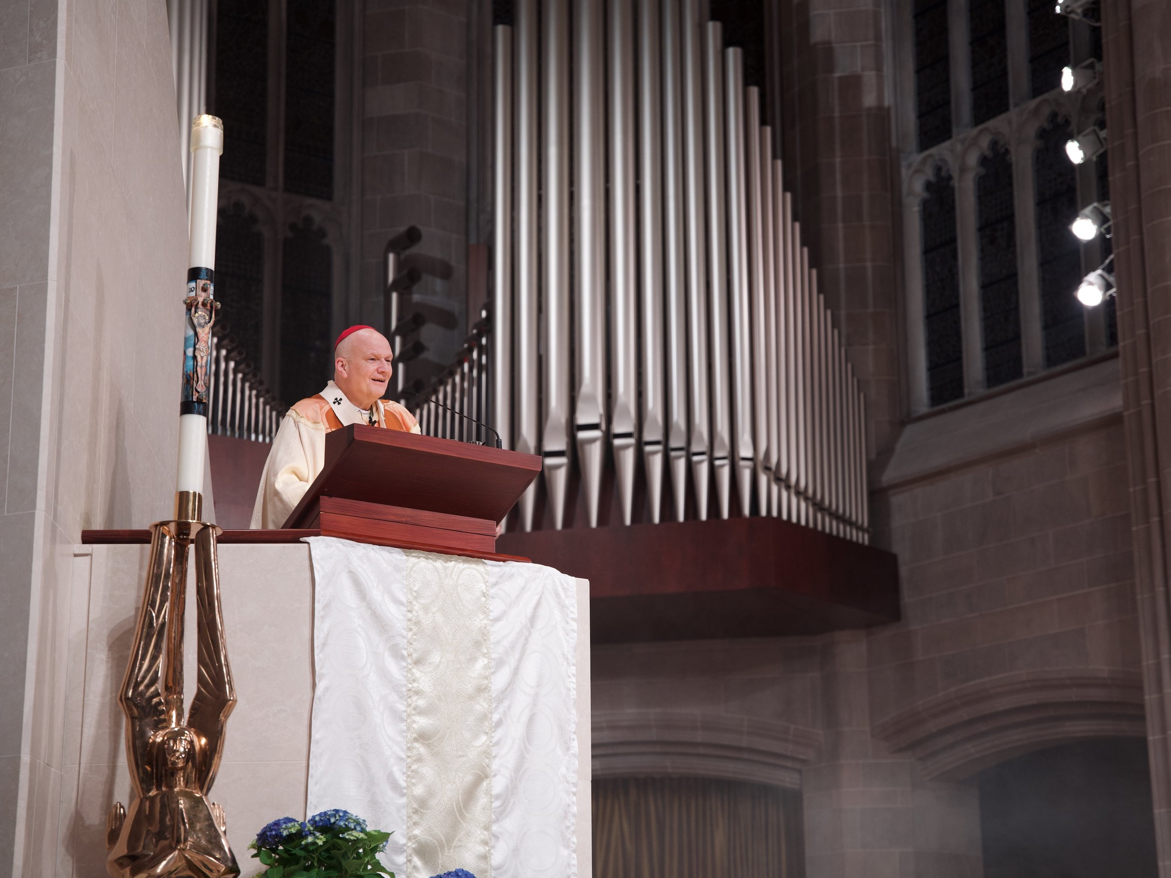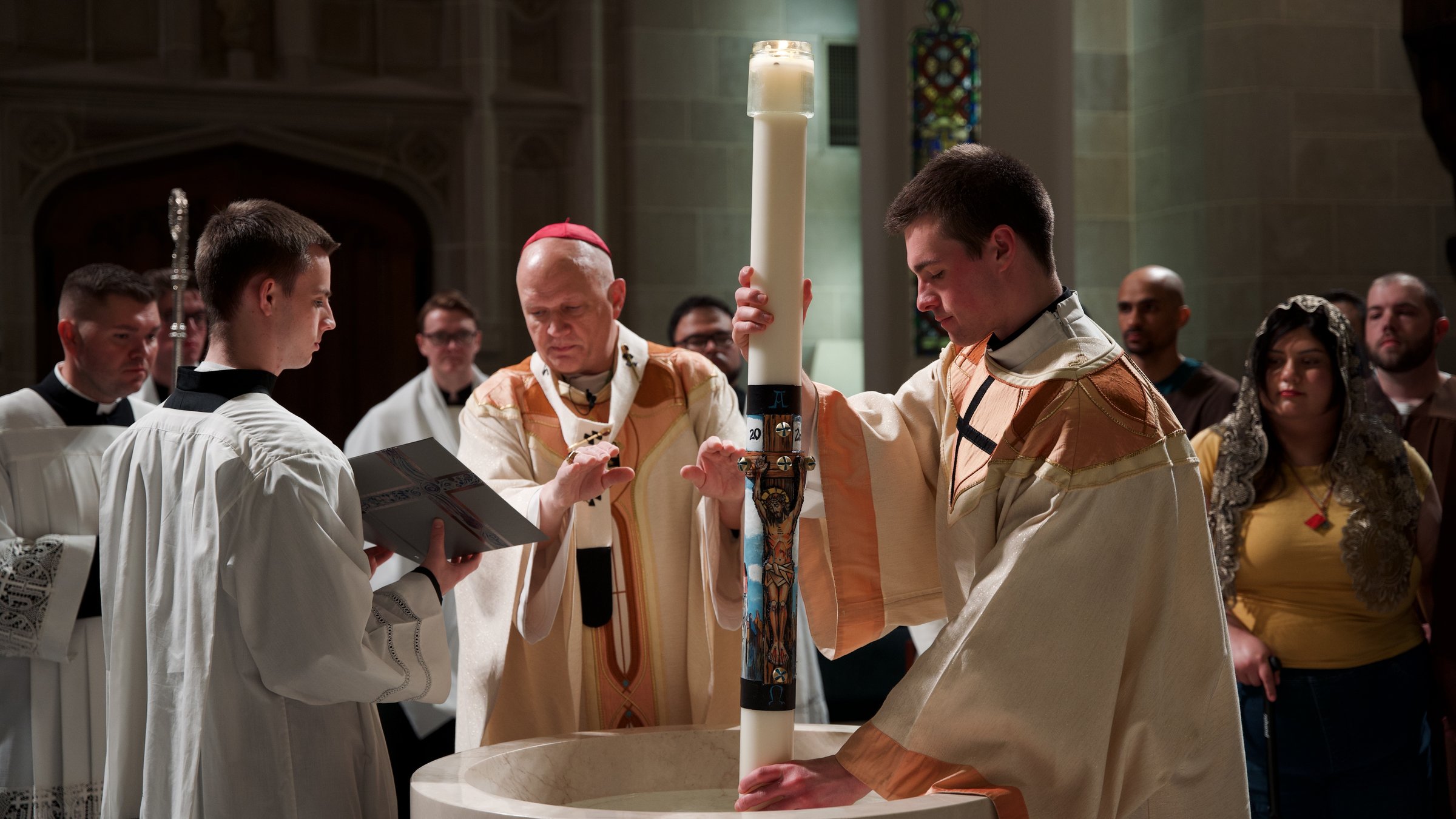 Cathedral is illuminated with candlelight as Archbishop Weisenburger, dozens of new Catholics usher in the Easter season