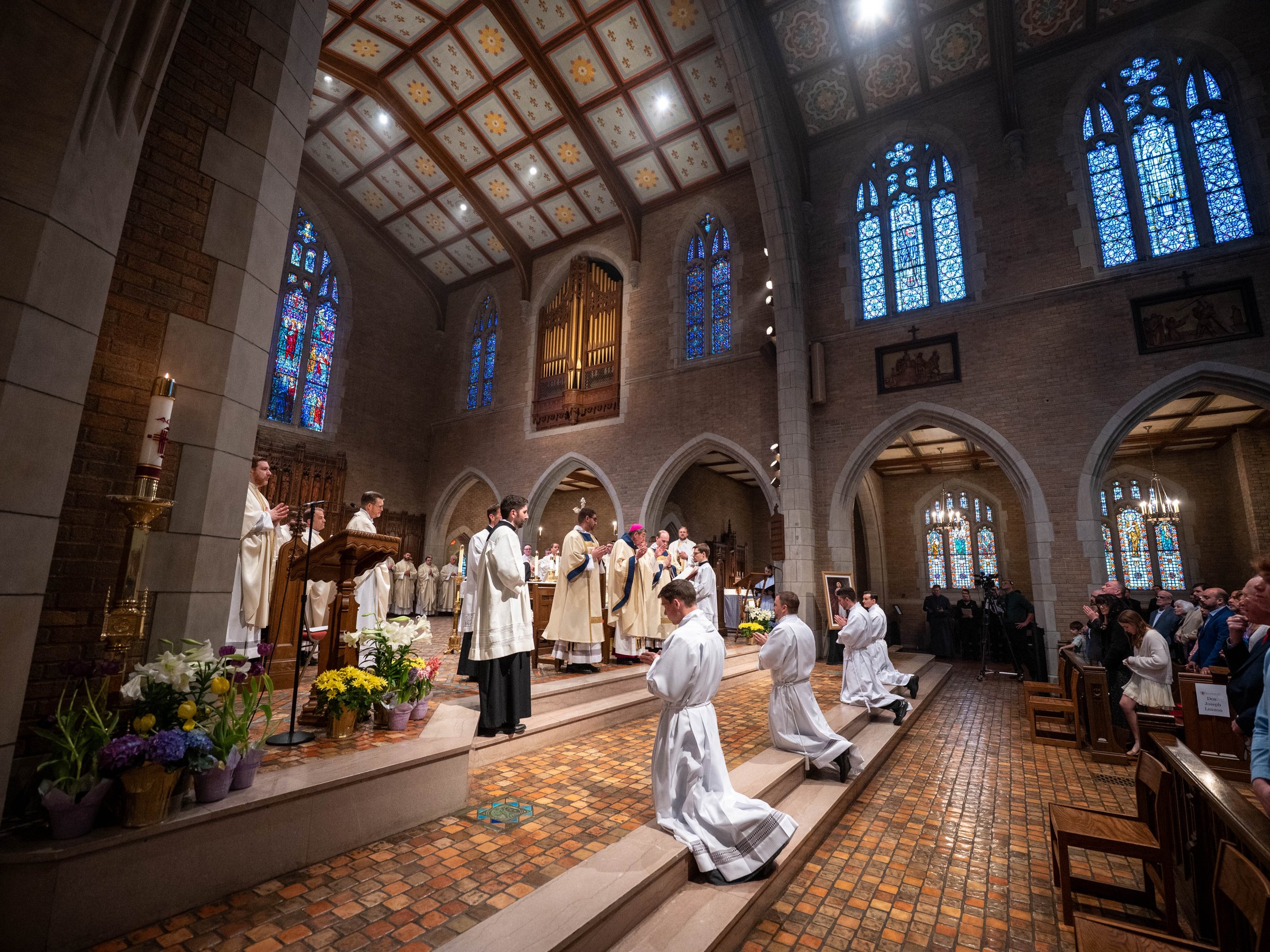 Following the homily, each of the four candidates made their Promise of the Elect, where they pledged their respect and obedience to their respective ordinary and his successors. The four candidates then prostrated themselves before the altar as the assembly sang the Litany of Supplication, praying for the elect.