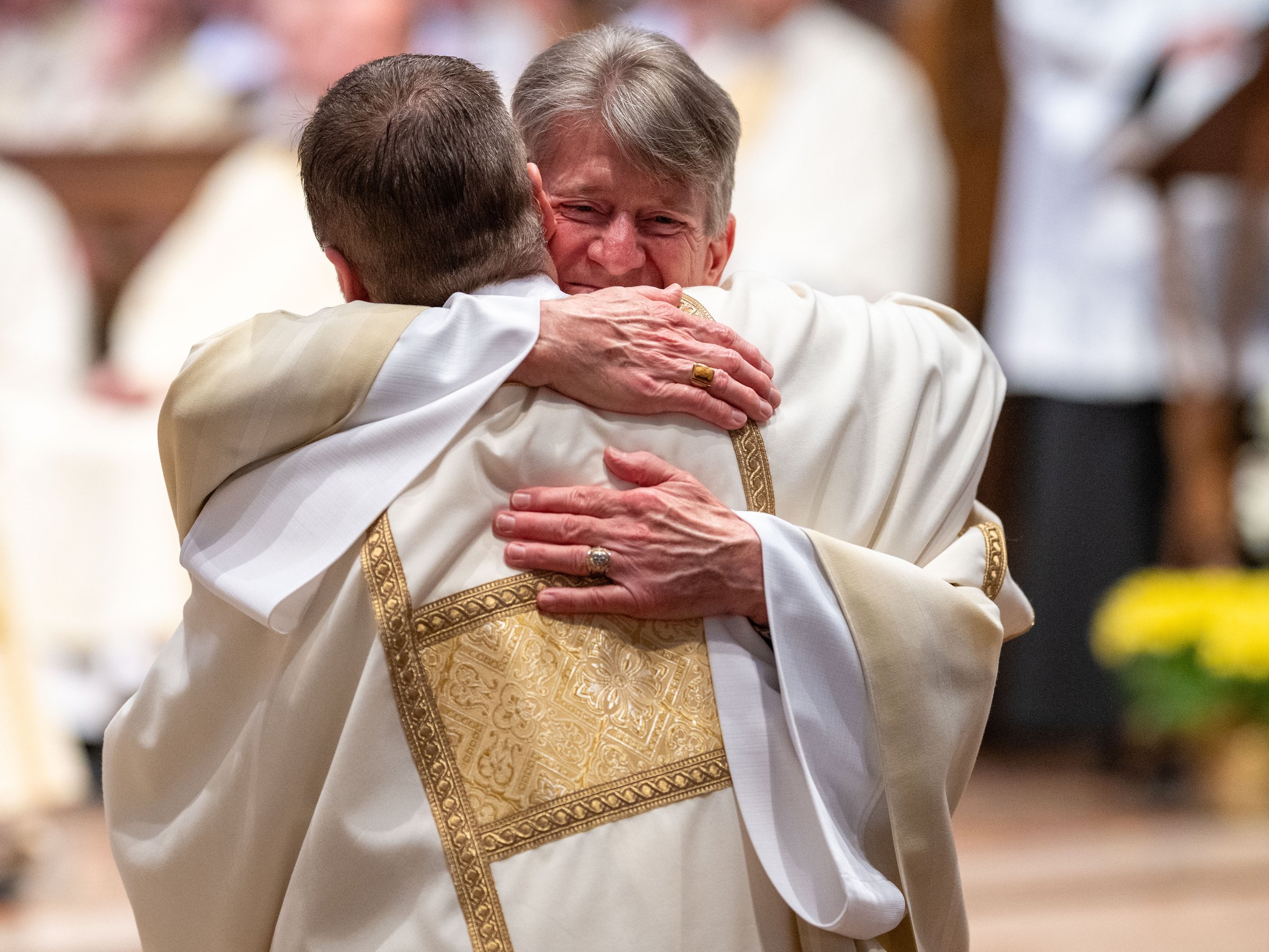 Archbishop Vigneron and the deacons present then welcomed the newly ordained with the sign of peace.