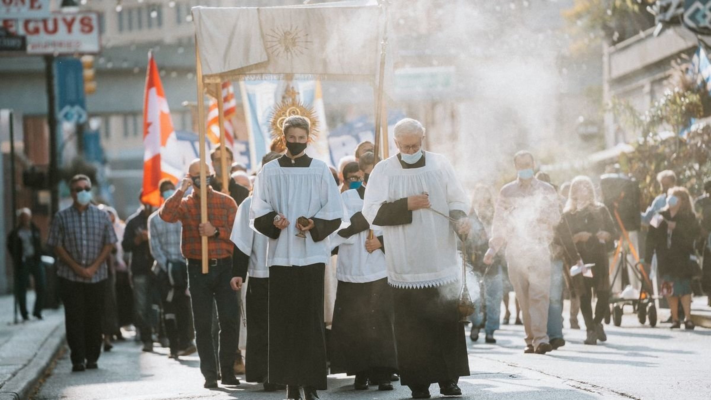 Join Metro Detroit Catholics at Old St Mary’s Parish in Greektown for a Eucharistic procession through Greektown. Our Canadian neighbors will pray at the same time across the Detroit River at the Bert Weeks Memorial Gardens in Windsor.