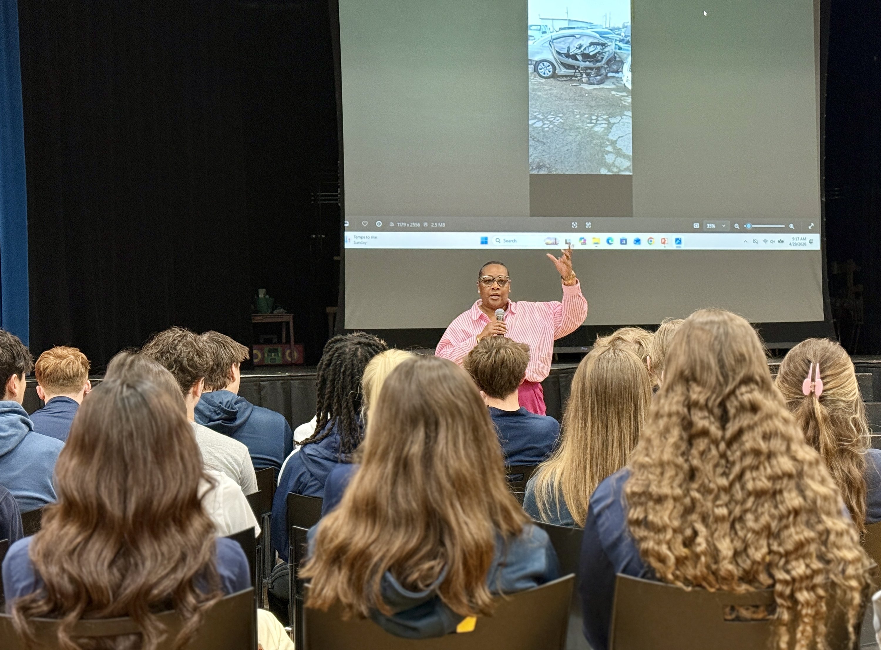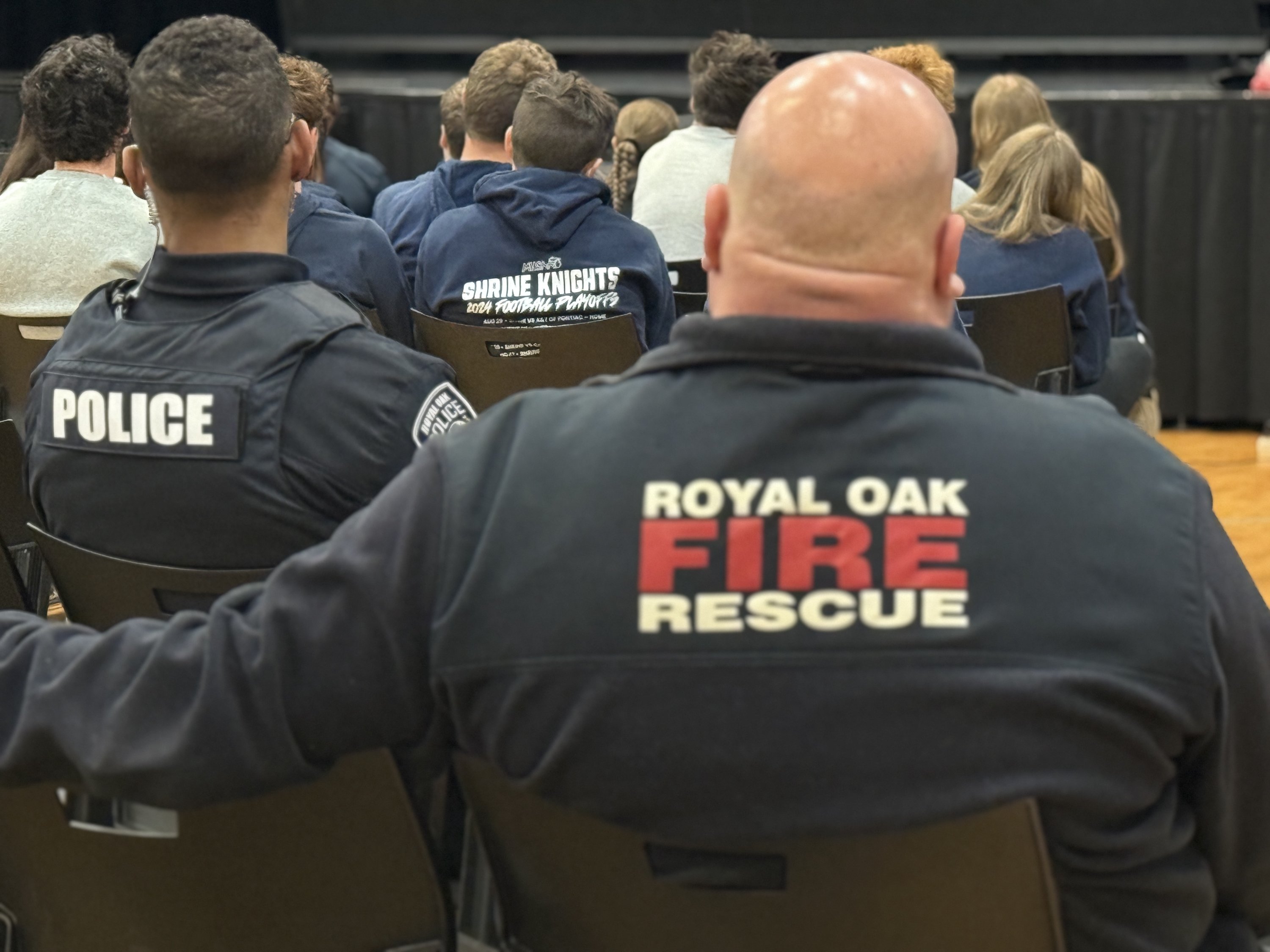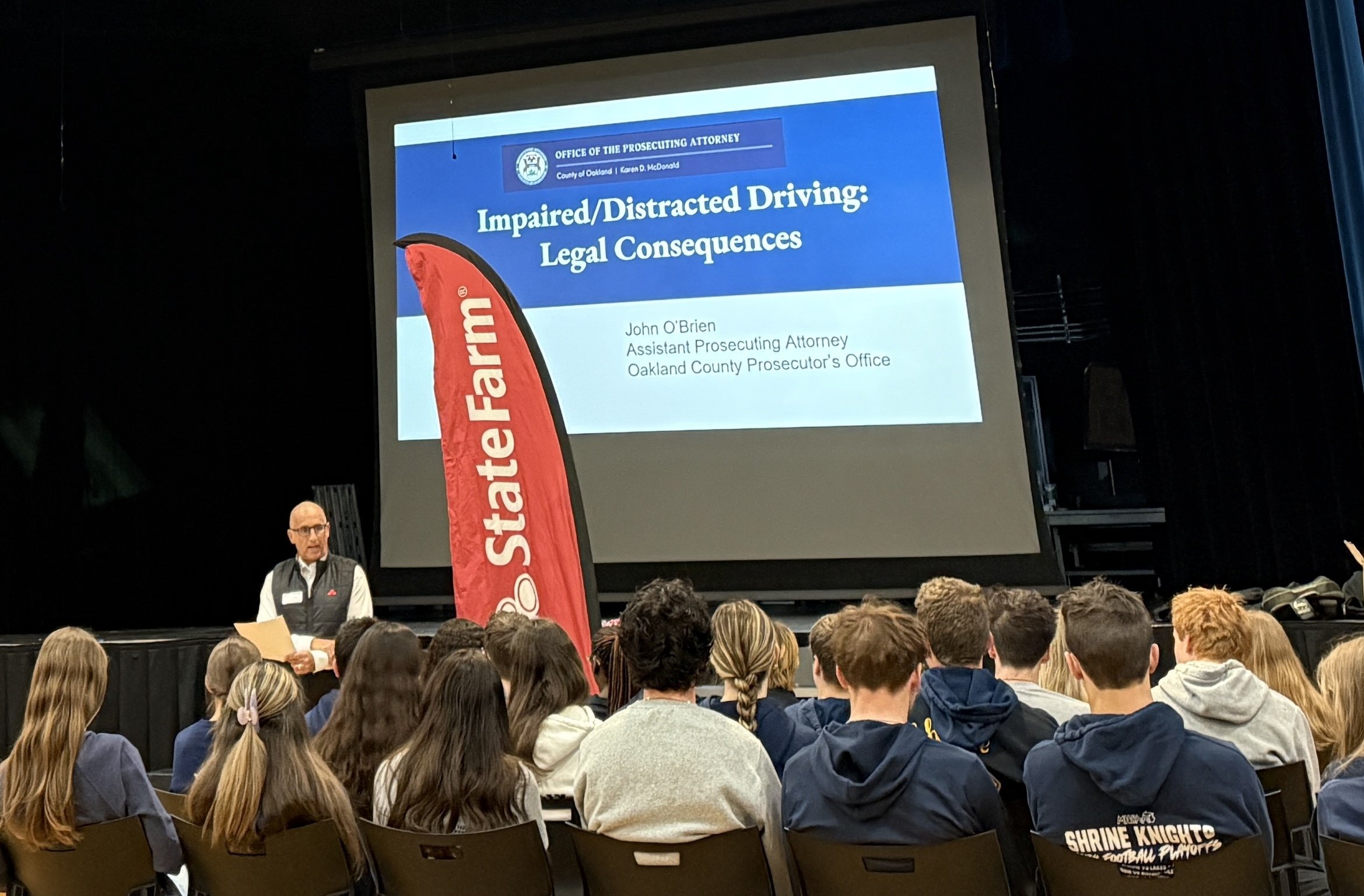 A survivor of a distracted driving incident shared their story with Shrine sophomores, while police, fire, emergency response officials and an Oakland County prosecutor explained the real-world consequences of distracted driving.