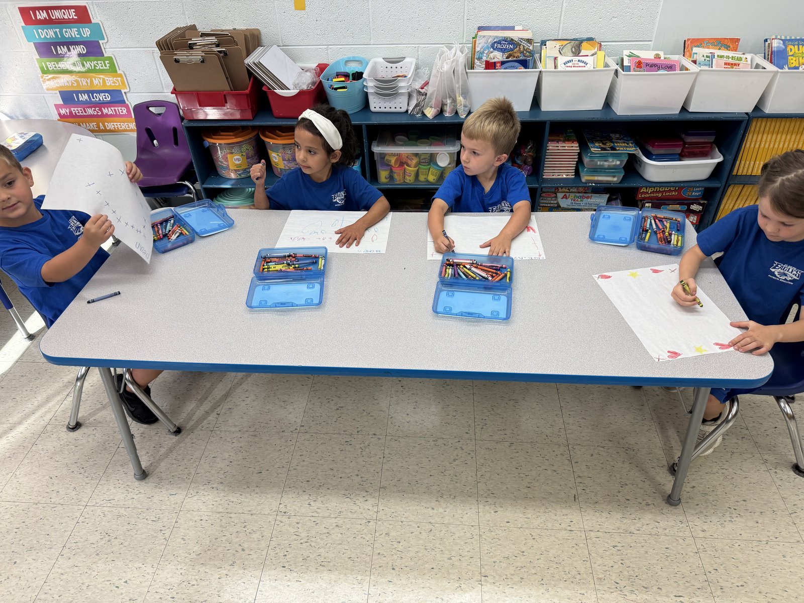- Preschool and kindergarten students decorated placemats for Clergy Village and colored pages for the local police and fire department.