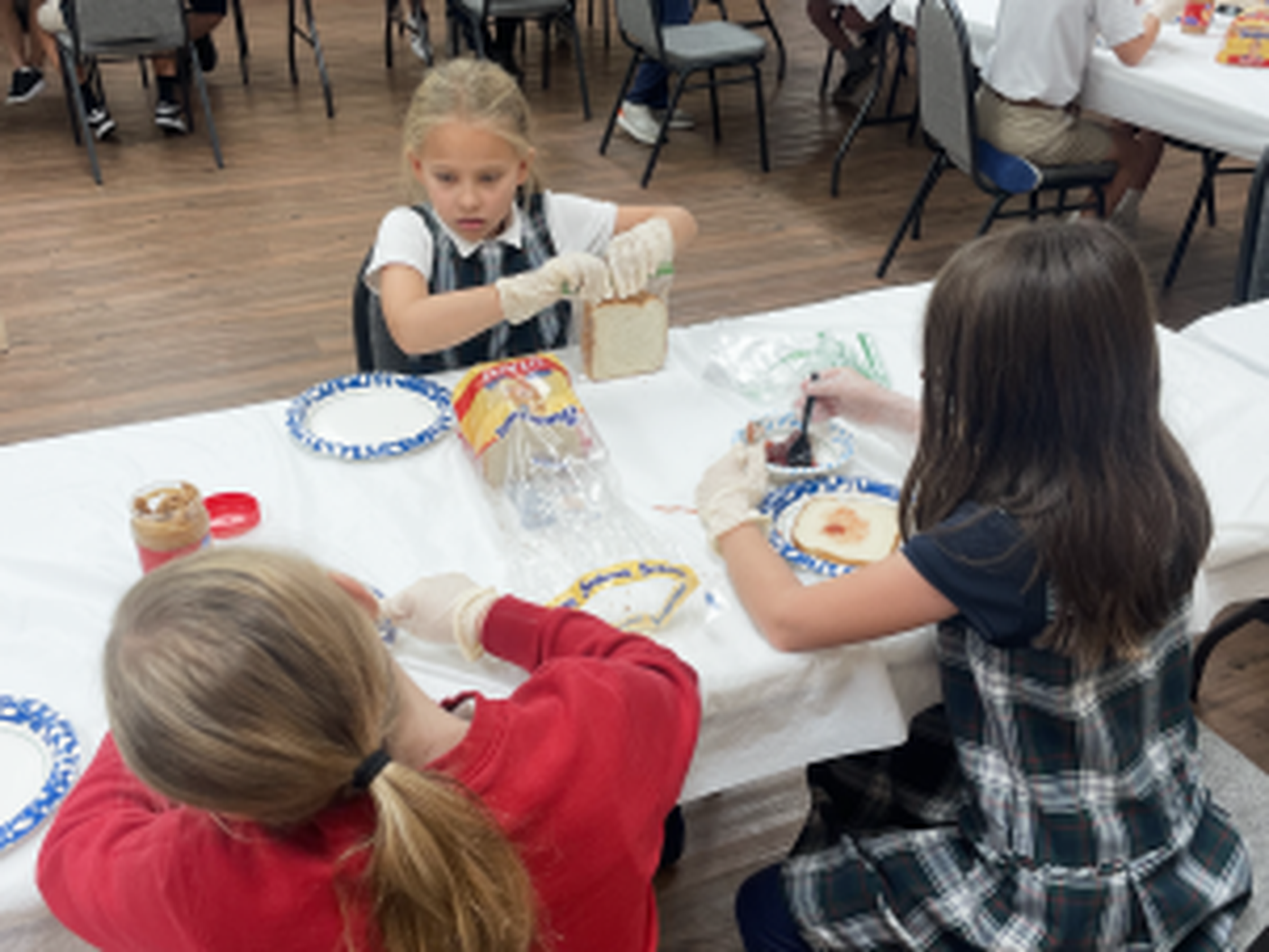 The service projects at St. Edith ties in with the school's mission of incorporating the seven themes of Catholic social teaching this academic year, particularly the dignity of every human person, the call to family, community, and participation, and caring for God’s creation.
