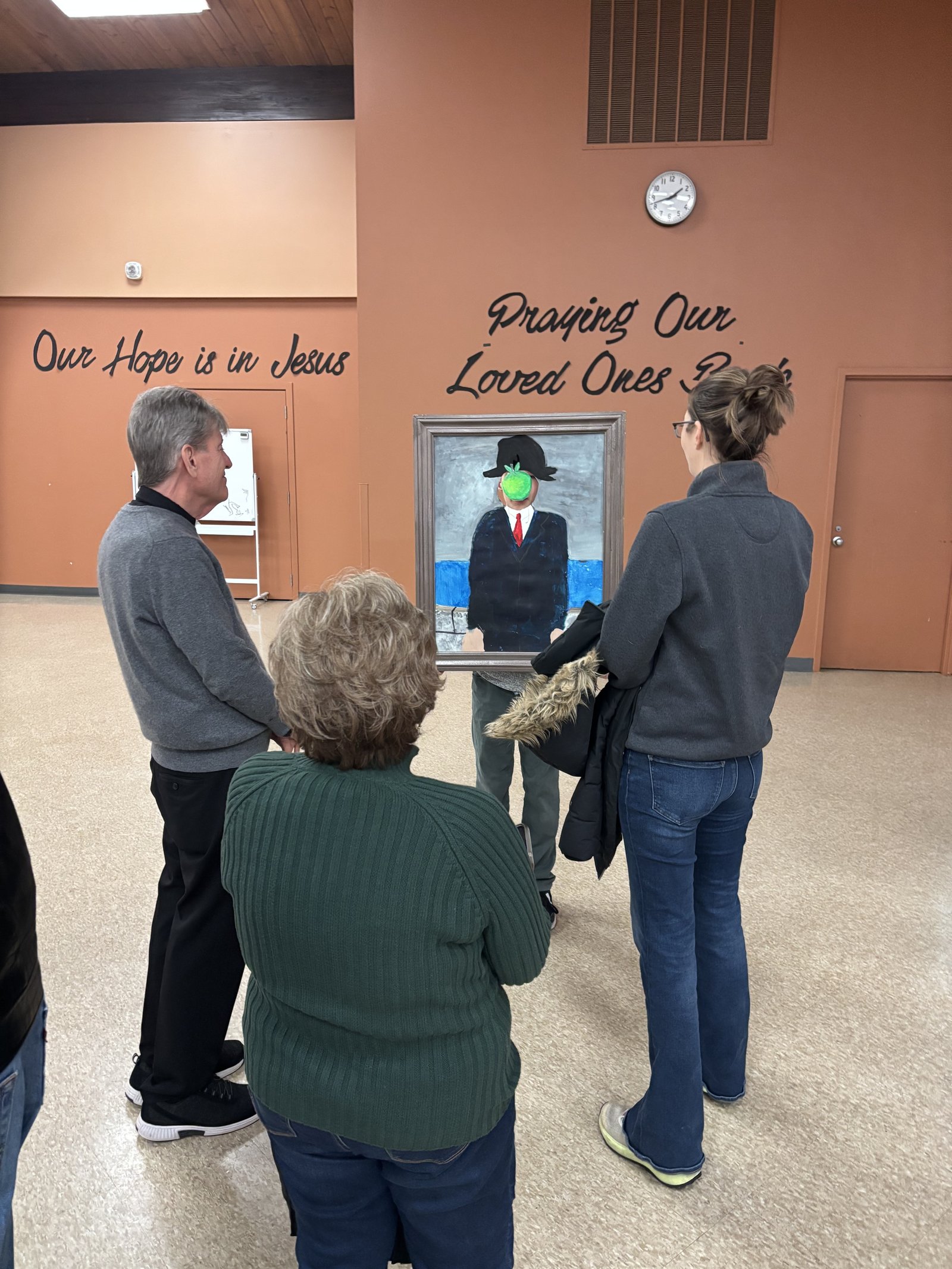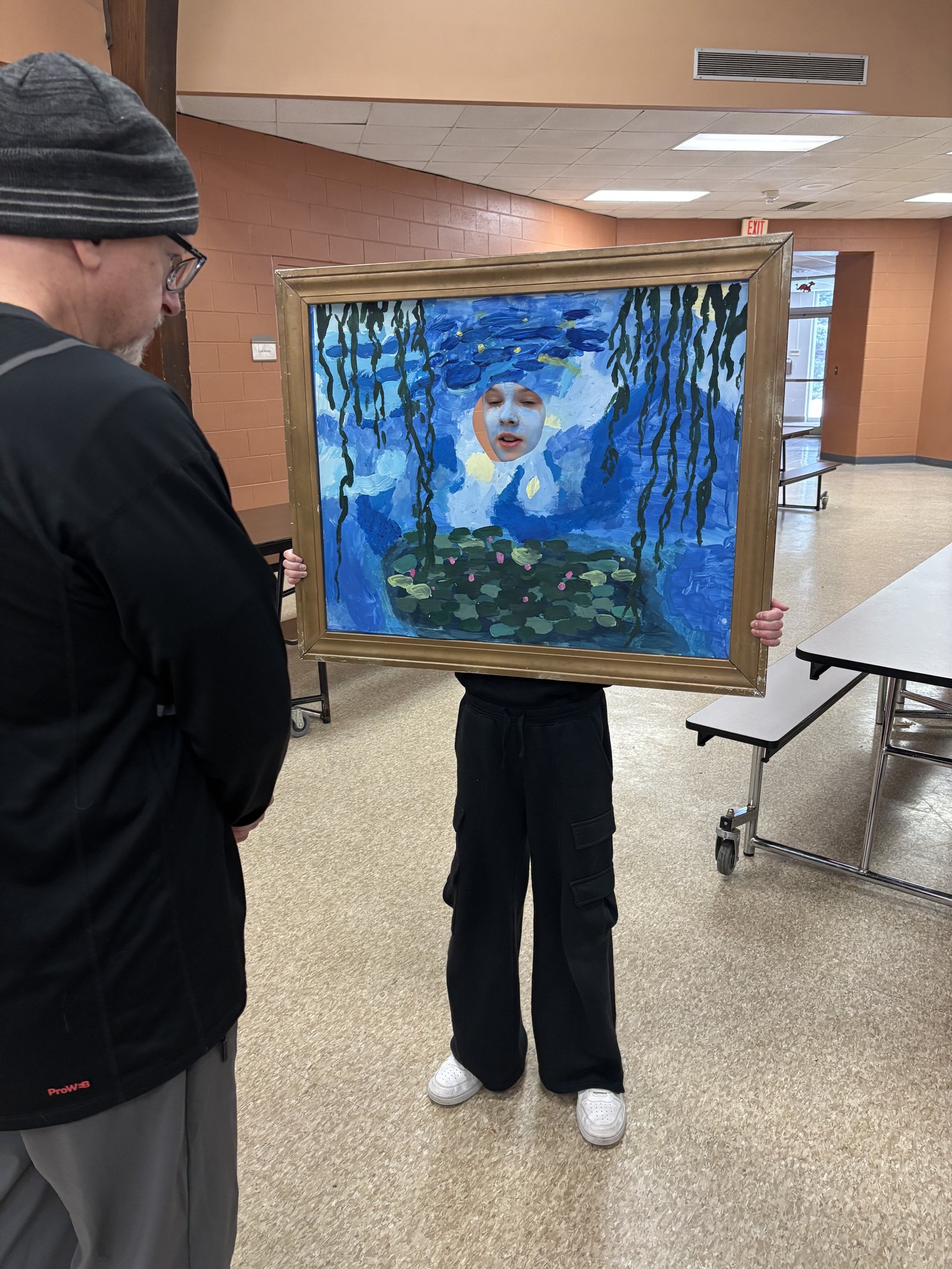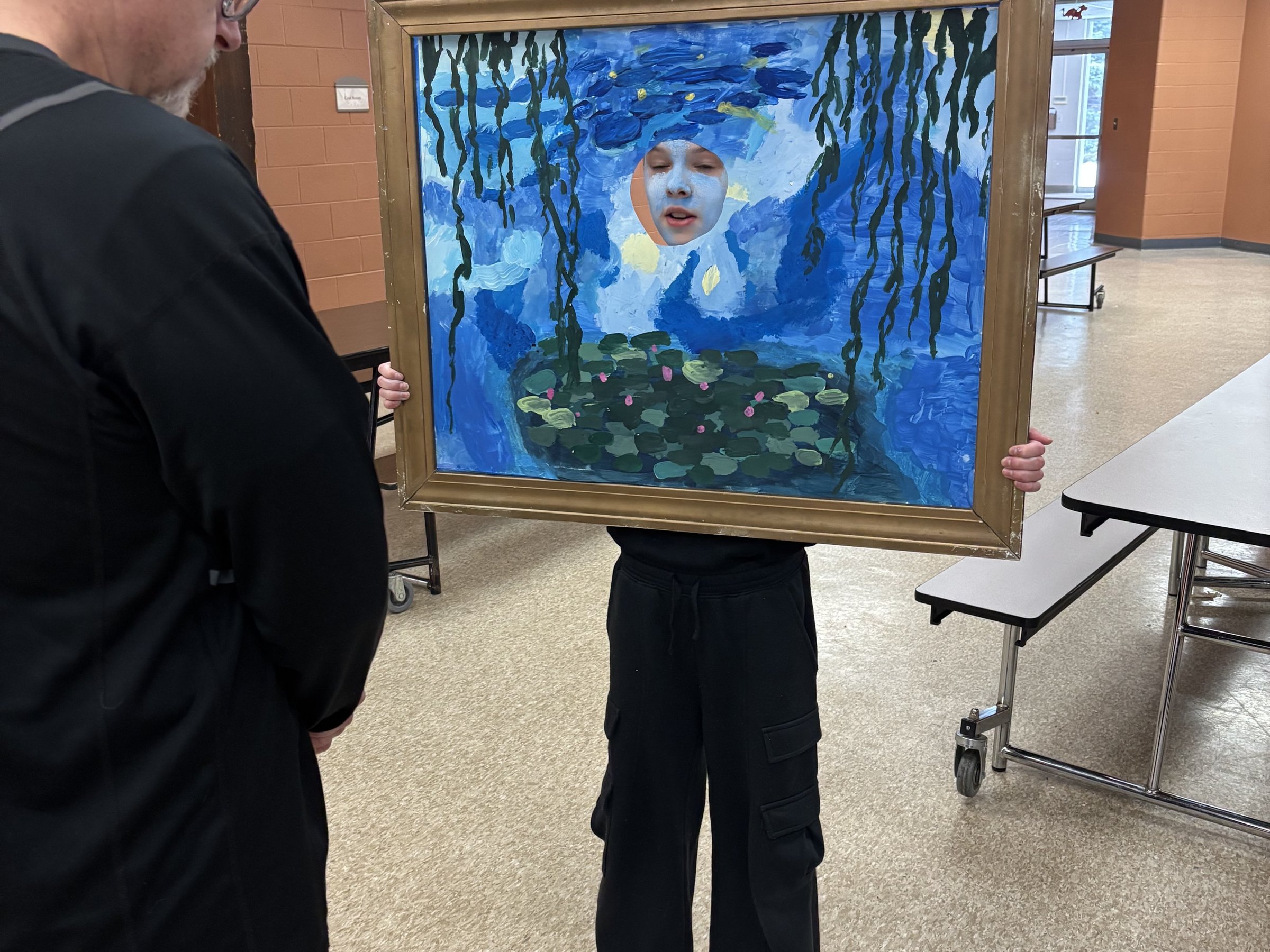 After selecting an artist and a favorite piece of artwork, students recreate the artwork using large-scale materials and a variety of art supplies, including paint, pastels, markers, and three-dimensional elements in art class. Students complete the research in social studies class. Then, each student writes in English class and memorizes speeches to share key facts about their artist and artwork, building confidence in public speaking and presentation skills.