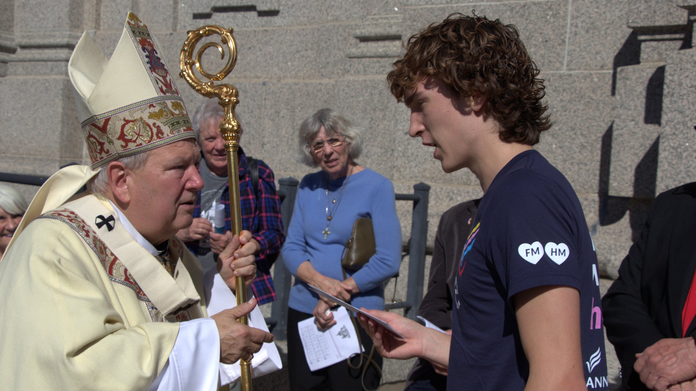 After a Sept. 27 memorial Mass at the Cathedral of St. Paul in St. Paul marking one month since the shooting, Jimmy Kaiser handed his letter to Archbishop Hebda, asking that the archbishop include it among the letters from Annunciation.