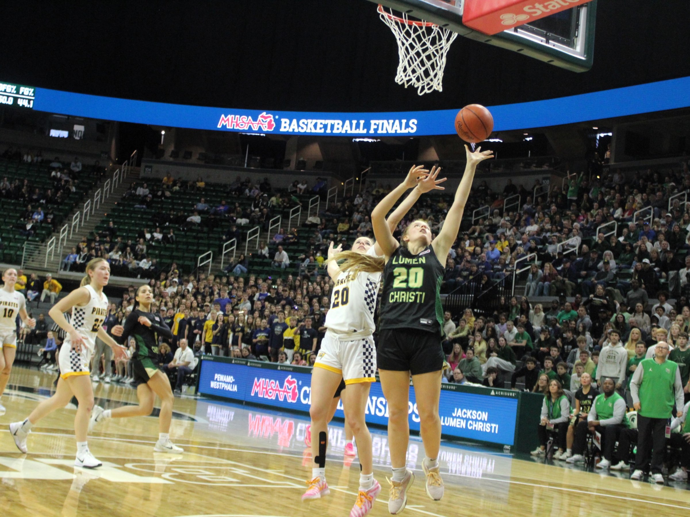 The game was actually tied, 34-34, following three quarters before Lumen Christi got hot down the final stretch and closed out the game on an 18-2 run. The Titans (25-3) made all four of their shots from the floor and 9-of-12 from the free throw line in the final period, while Pewamo-Westphalia missed all nine of its field goal attempts and notched its only two points on free throws.
