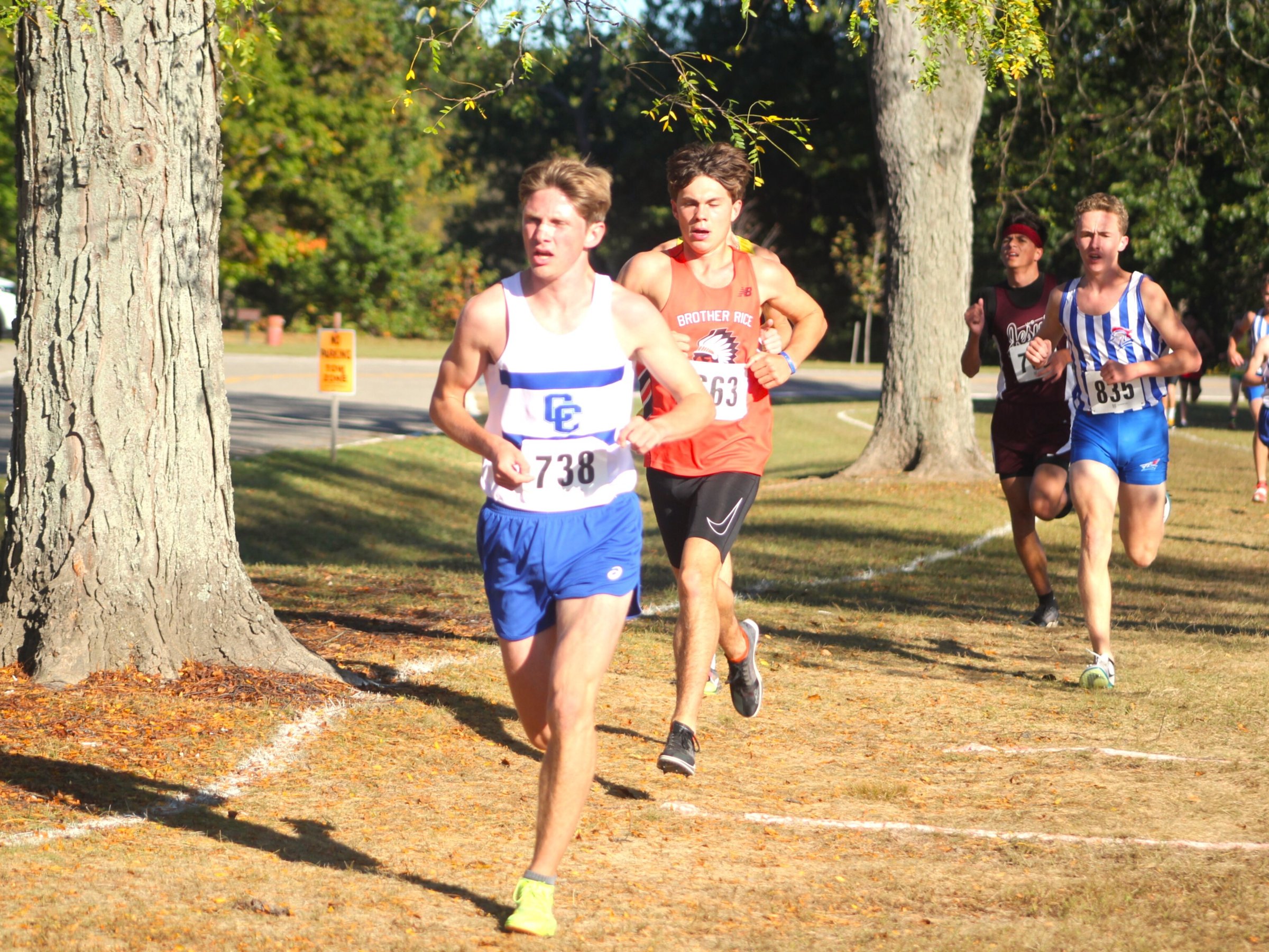 The younger Collins moved to the front with 200 meters to go in the Catholic League Bishop Division cross-country race Oct. 8 at Kensington Metropark, and was able to hold off all challengers as he reached the end of the 5-kilometer course in 16 minutes, 43.3 seconds.