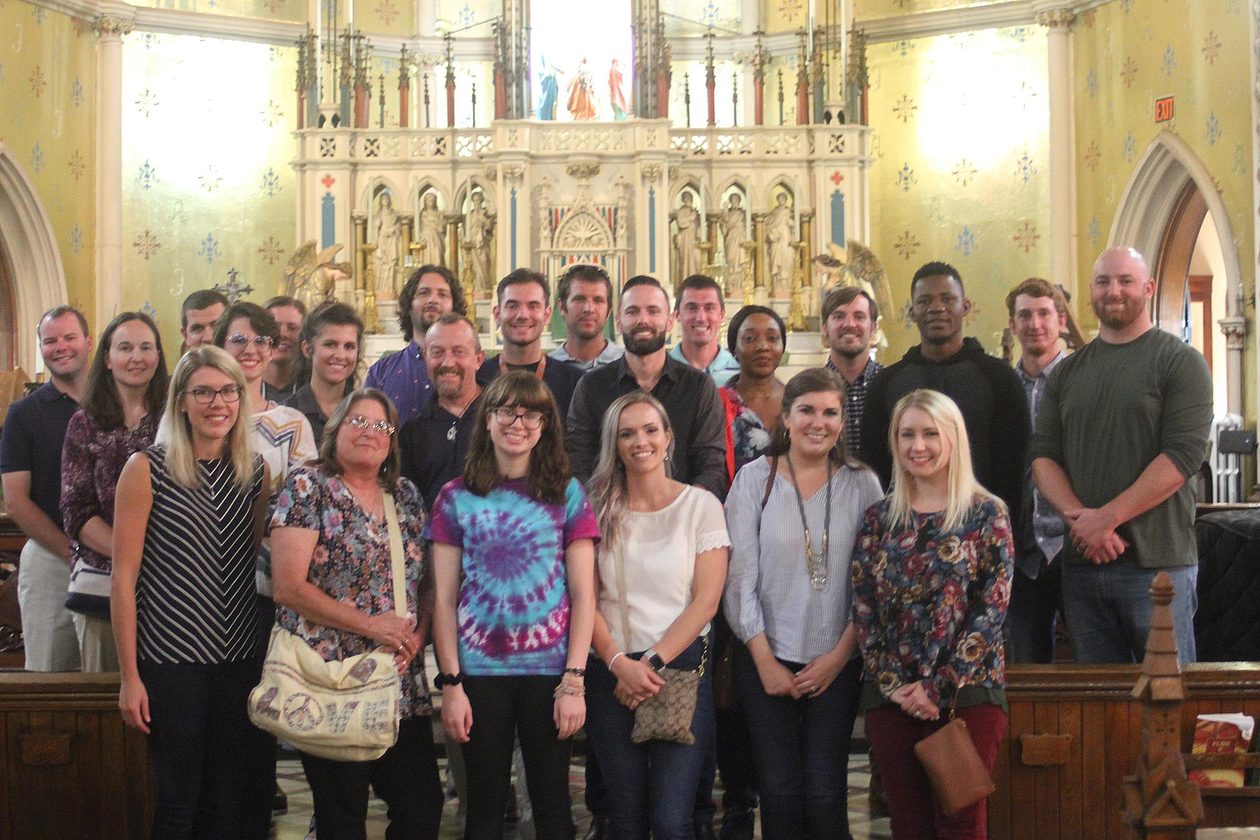 The next stop was nearby Ste. Anne de Detroit. The group was greeted at the front doors by a tour guide for the parish, founded in 1701. She captivated her visitors by telling of Ste. Anne’s long and tumultuous history in Detroit, pointing out unique features of the church’s spectacular neo-Gothic architecture, and sharing stories and anecdotes associated with the historic parish.