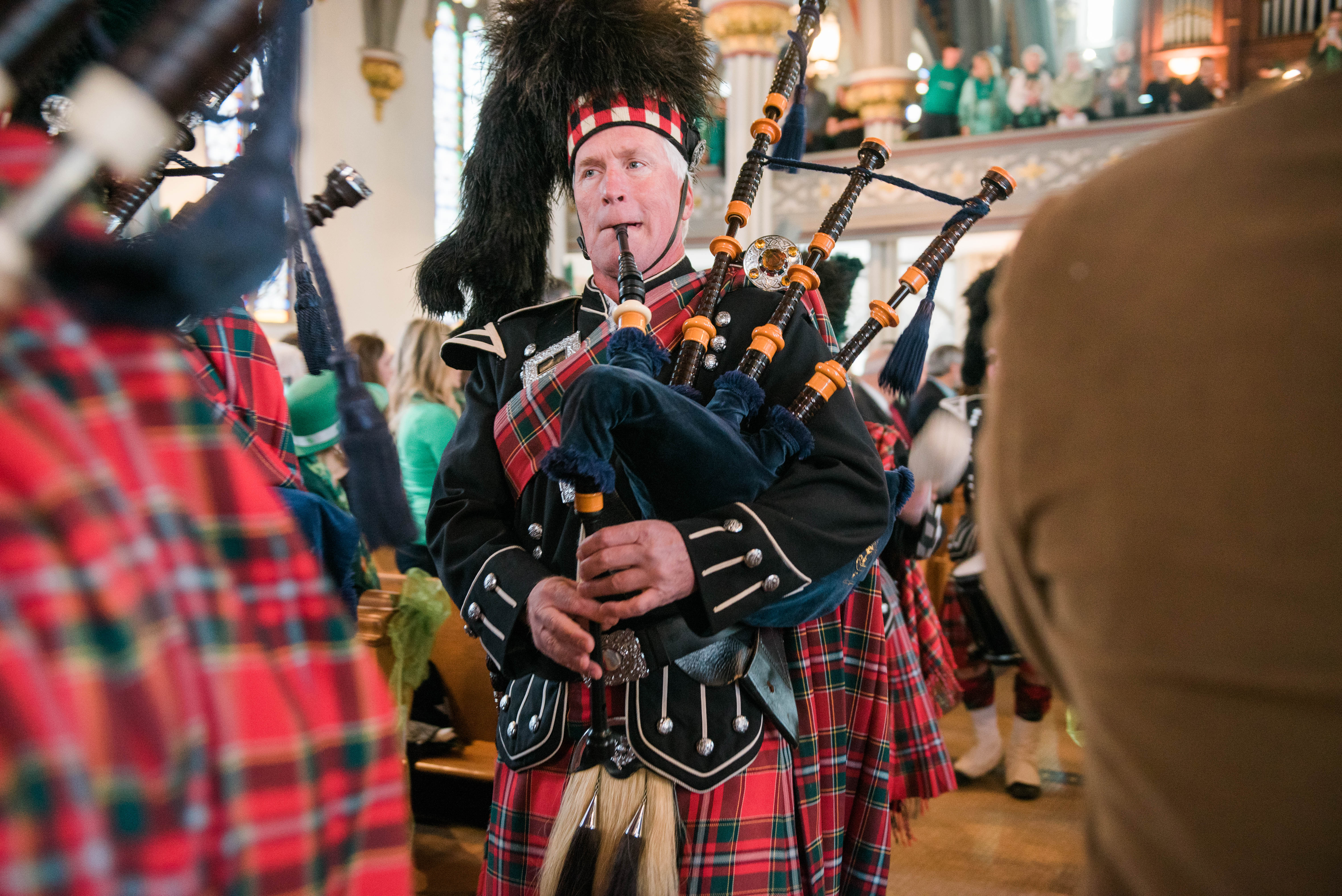 The congregation was mostly dressed in green, including representatives from the Gaelic League and the Ancient Order of Hibernians.