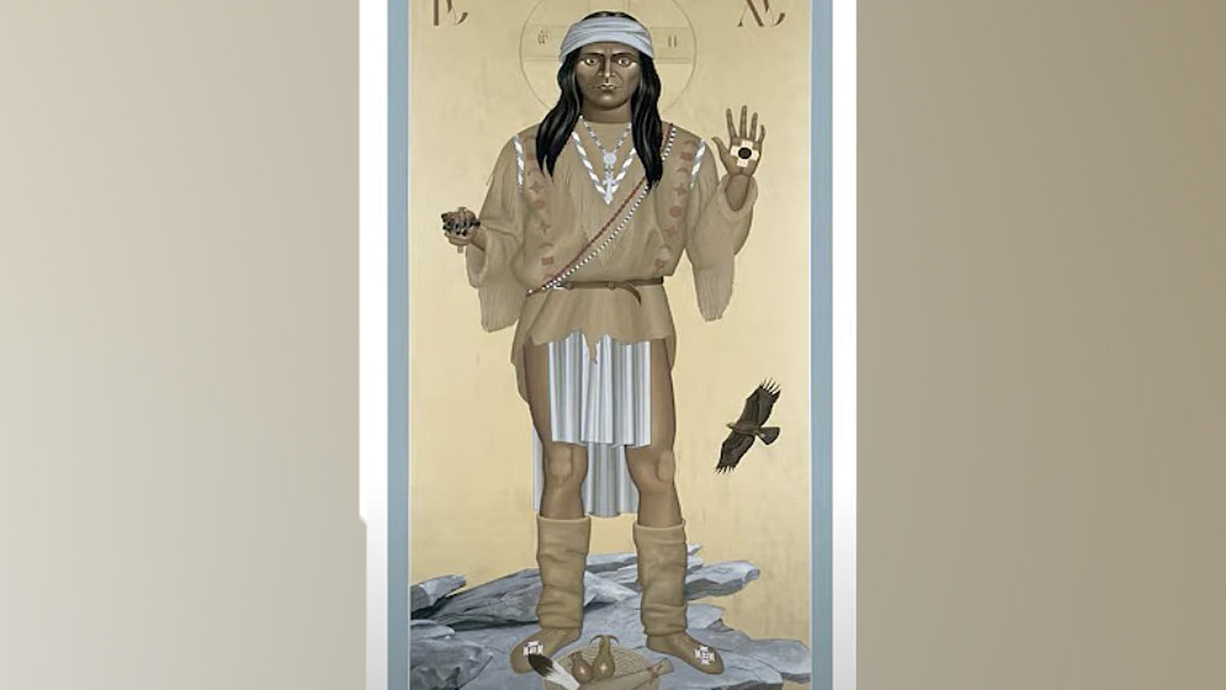 "Apache Christ" by Franciscan Friar Robert Lentz, an 8-foot icon depicting Jesus in the style of a Mescalero Apache holy man with the inscription in Apache "giver of life," and a painting of an Apache crown dancer by the late Apache artist Gervase Peso were taken June 26 from St. Joseph Apache Mission in Mescalero, New Mexico. Additionally several liturgical items reflecting Indigenous culture were missing.