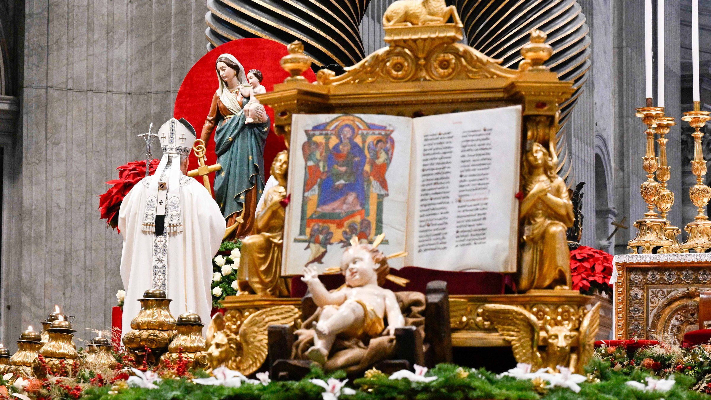 Thousands of people were present in the basilica for the celebration on New Year's Day, including young people dressed as the three kings who visited Jesus. A figurine of the infant Jesus was before the altar, in keeping with the Christmas season of celebration, and an image of Our Lady of Hope was to the side of the main altar as a sign of the Jubilee of hope, which will end Jan. 6.