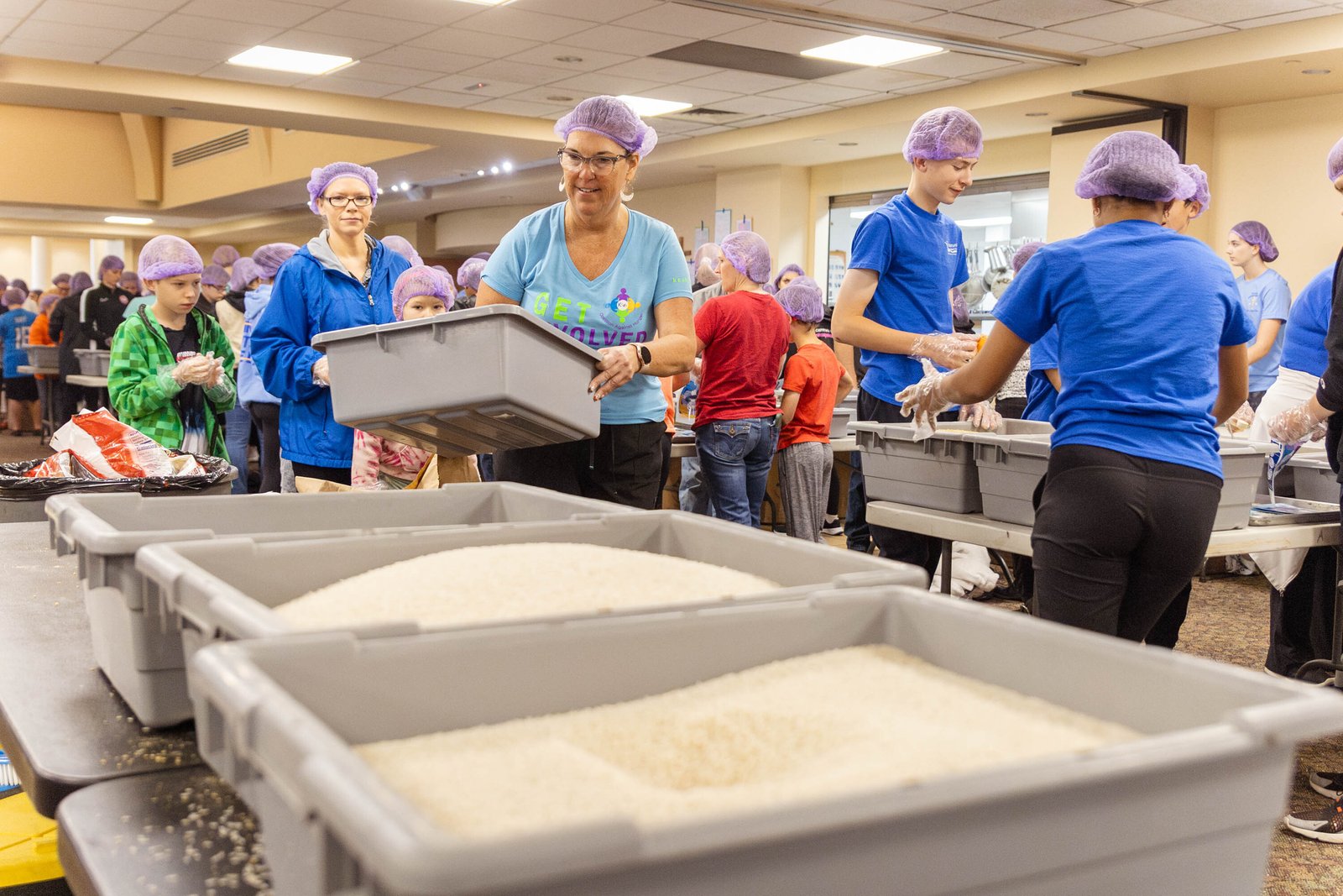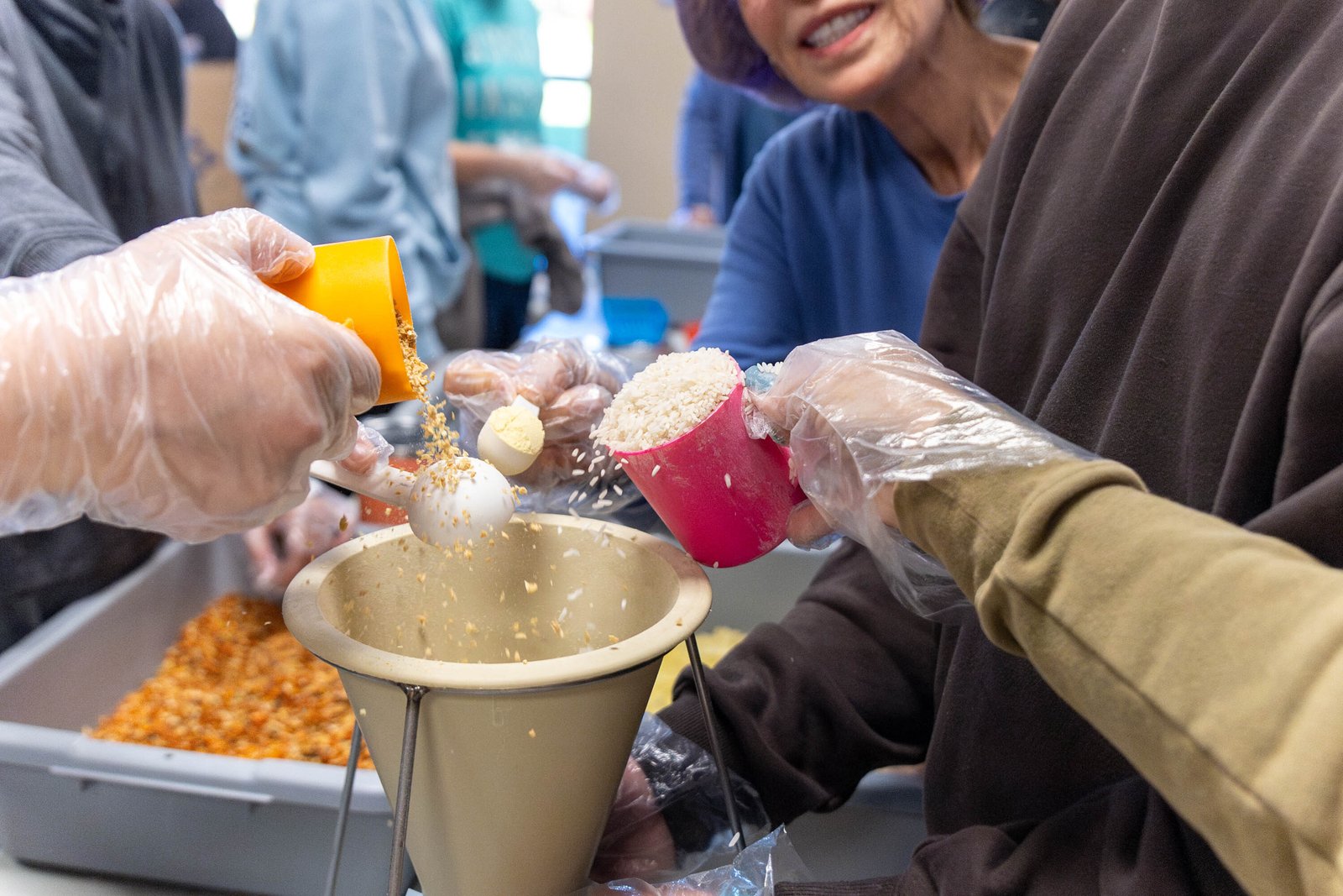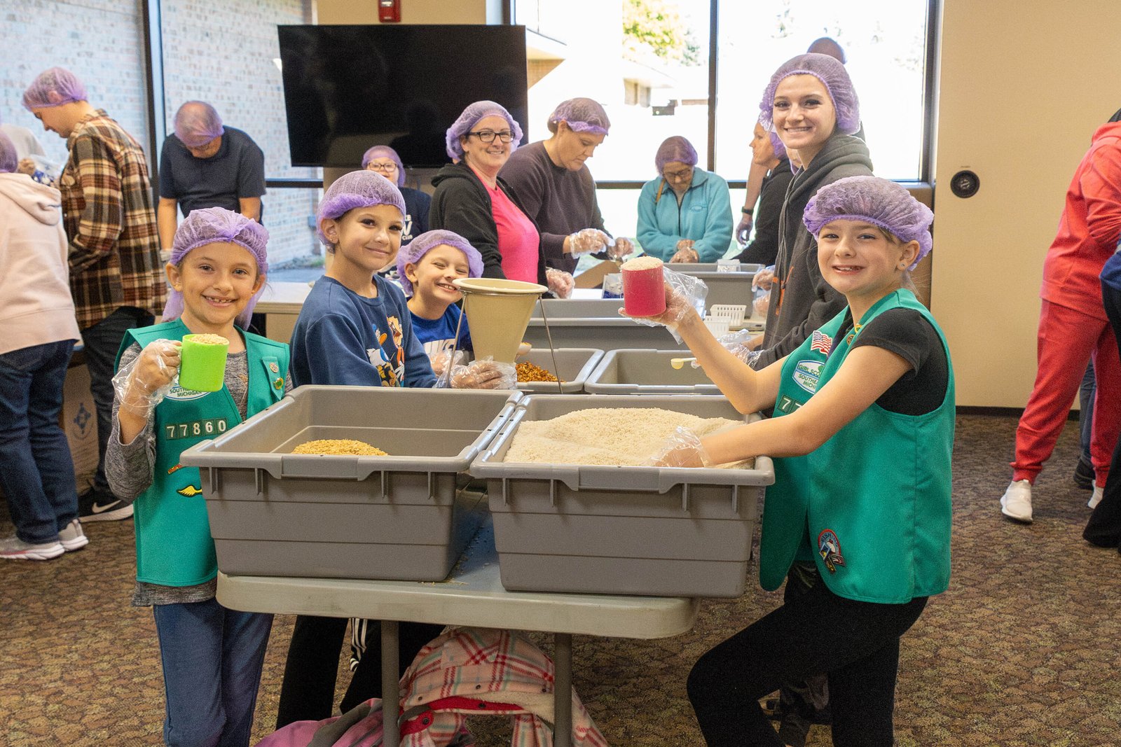 The meal packing event allows everyone to serve in some way, Kozlowski noted. Seniors might offer funding for the project, while young families pitch in for the physical part of the effort.