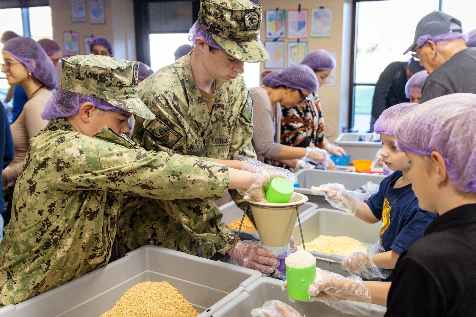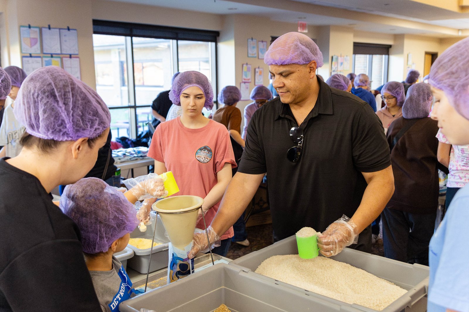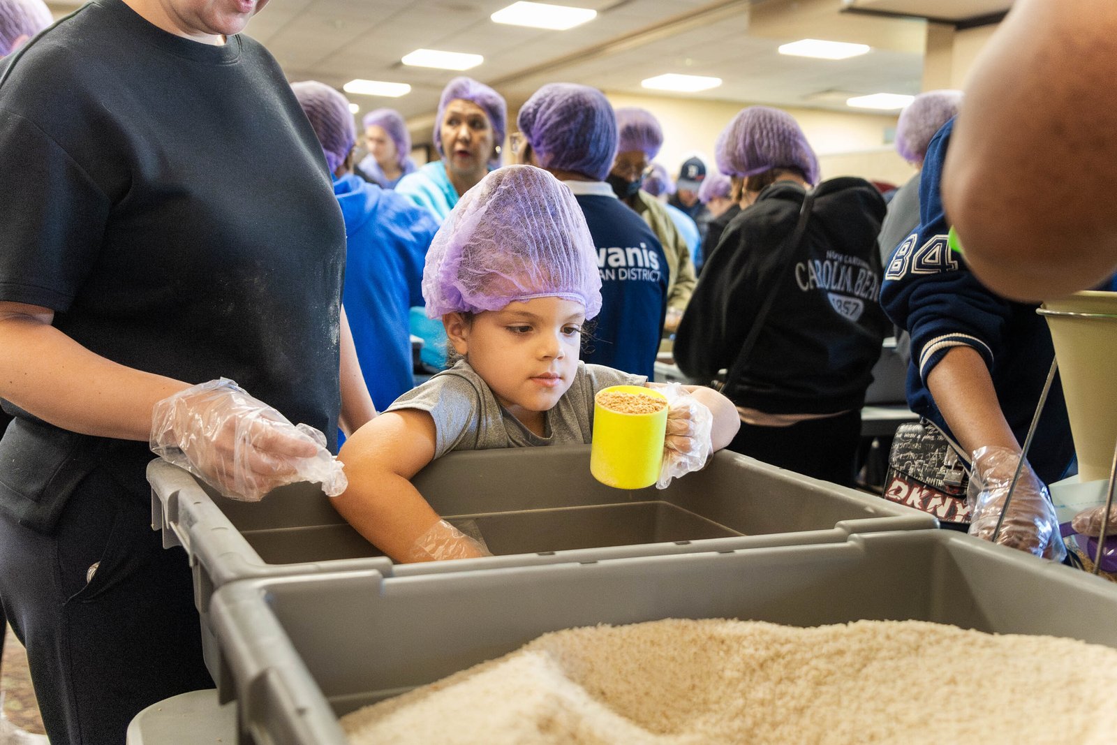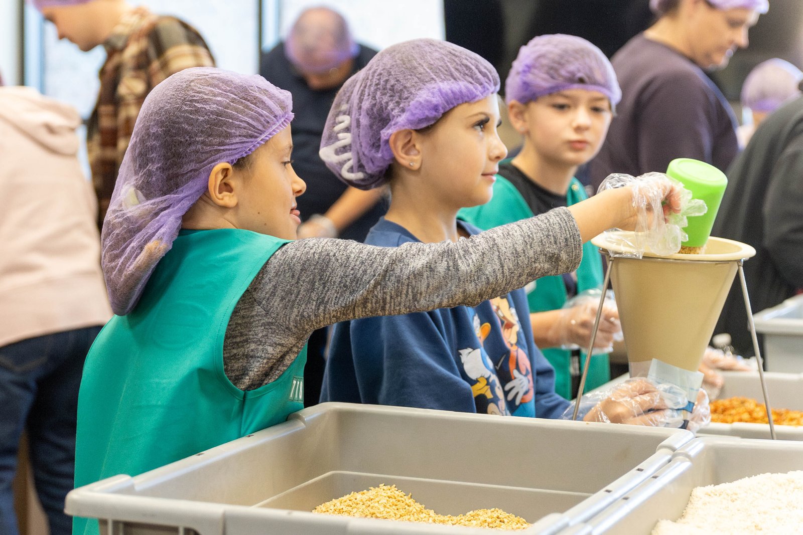 The meal packing event allows everyone to serve in some way, Kozlowski noted. Seniors might offer funding for the project, while young families pitch in for the physical part of the effort.
