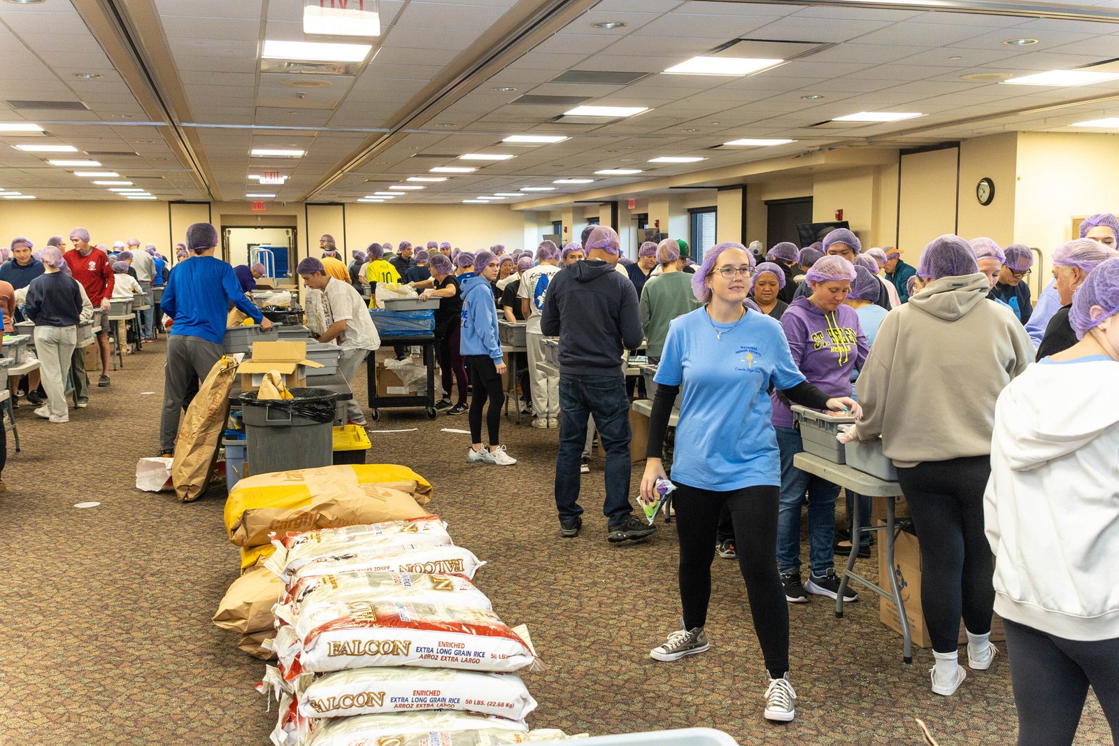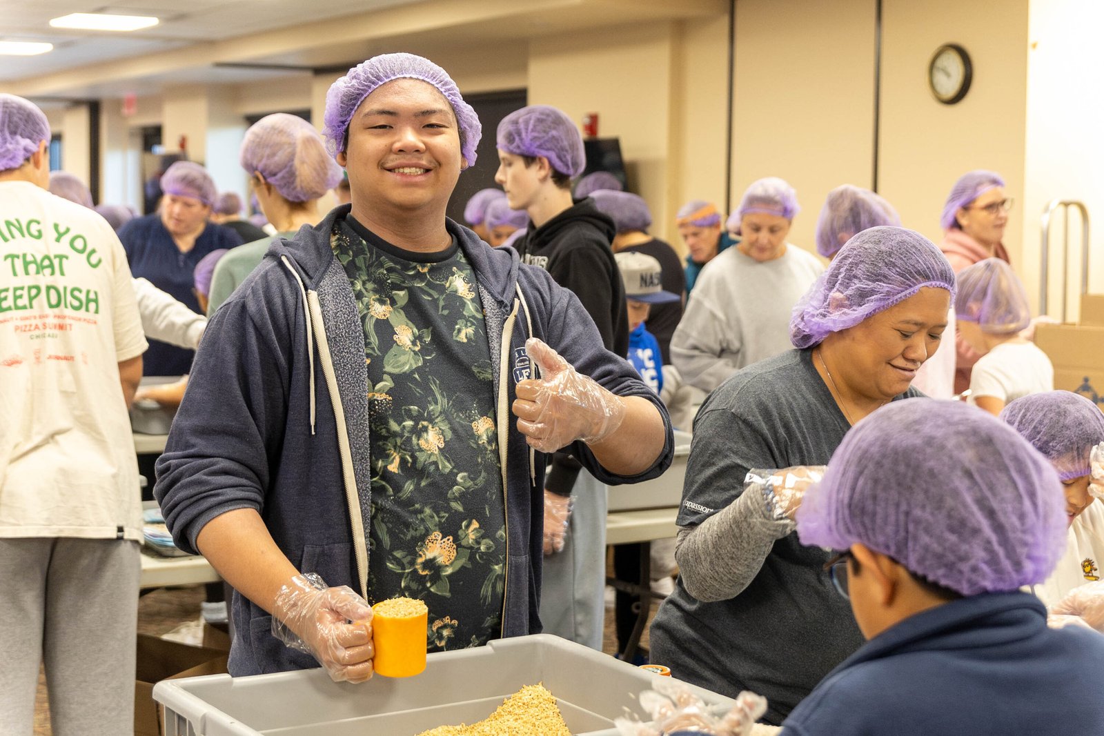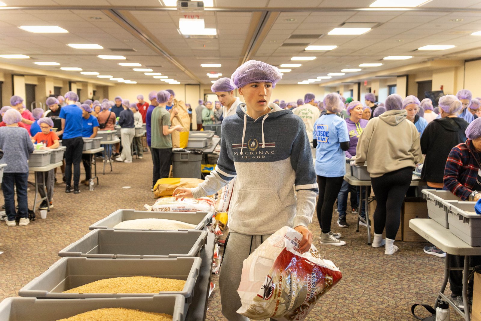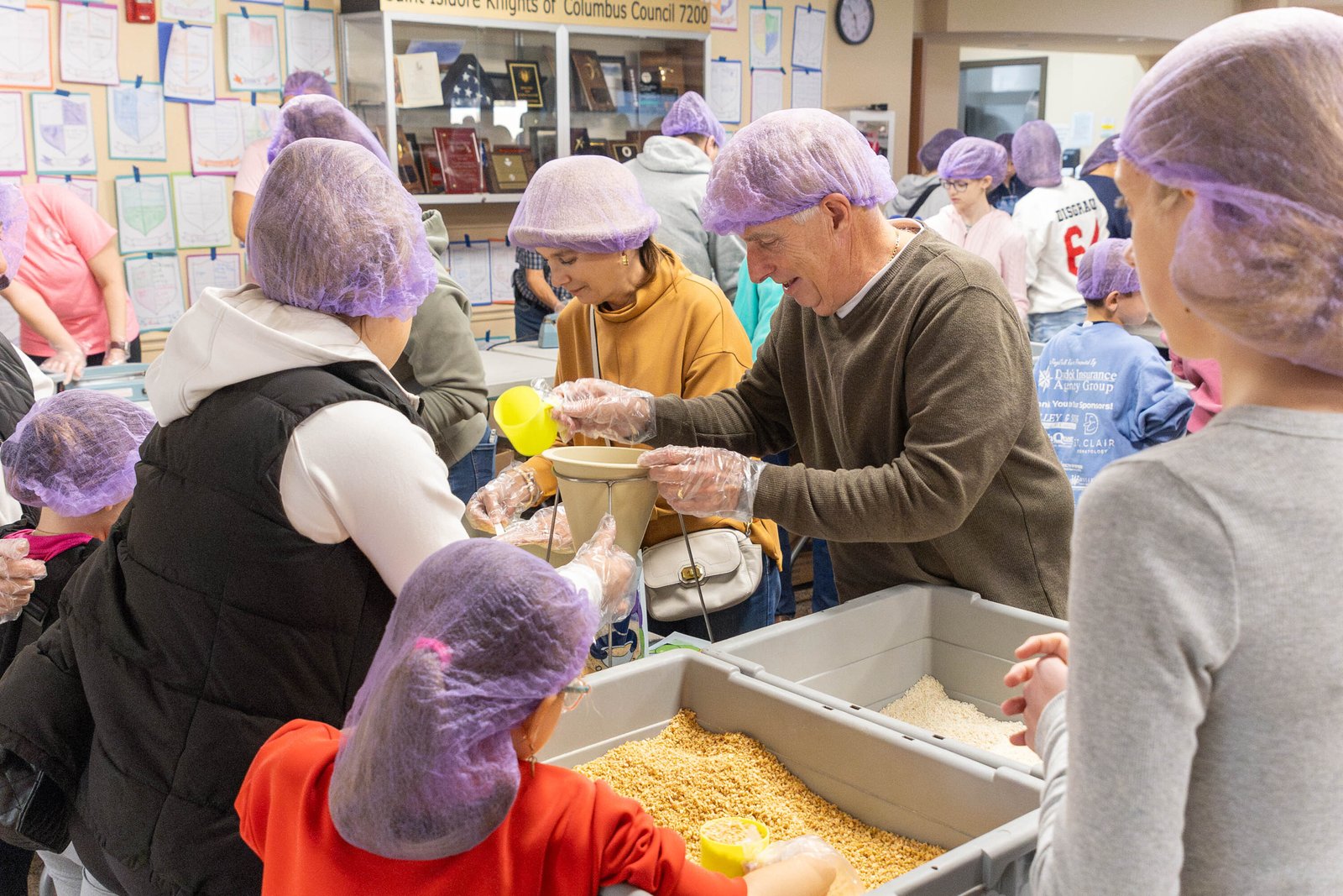 The day before, more than 400 volunteers streamed into the social hall at St. Isidore Catholic Church in Macomb to pack the meals. Parishioners from St. Isidore and other churches in the Disciples Unleashed Family of Parishes were joined by members of local Kiwanis and Key Clubs, who supported the effort with funding as well as volunteers. There were high school honor societies from Dakota High and Austin Catholic, and dance teams wearing matching jackets. There were individuals alongside entire families, and groups of friends who wanted to help others in a tangible way.