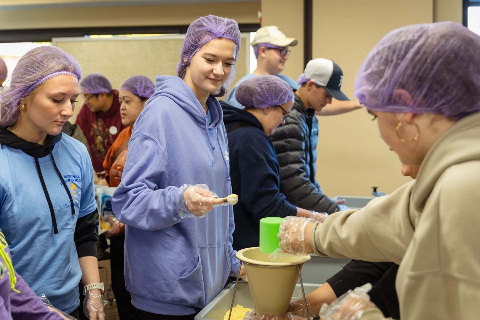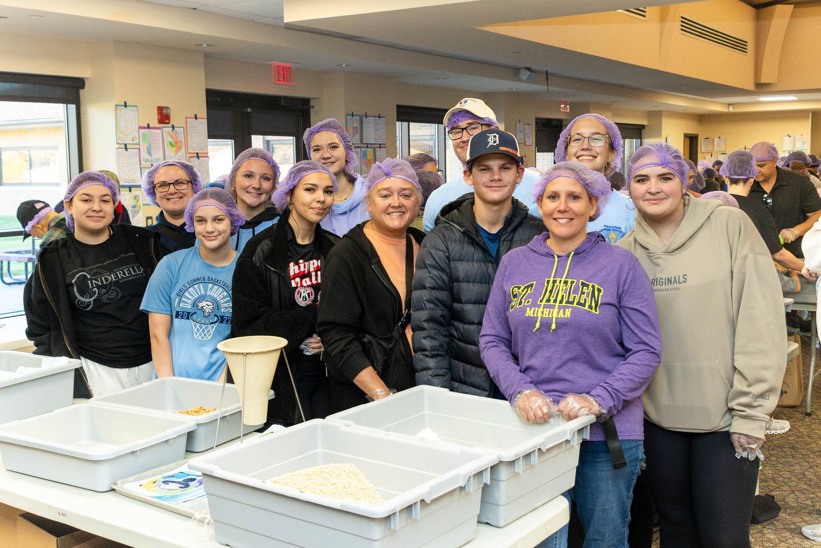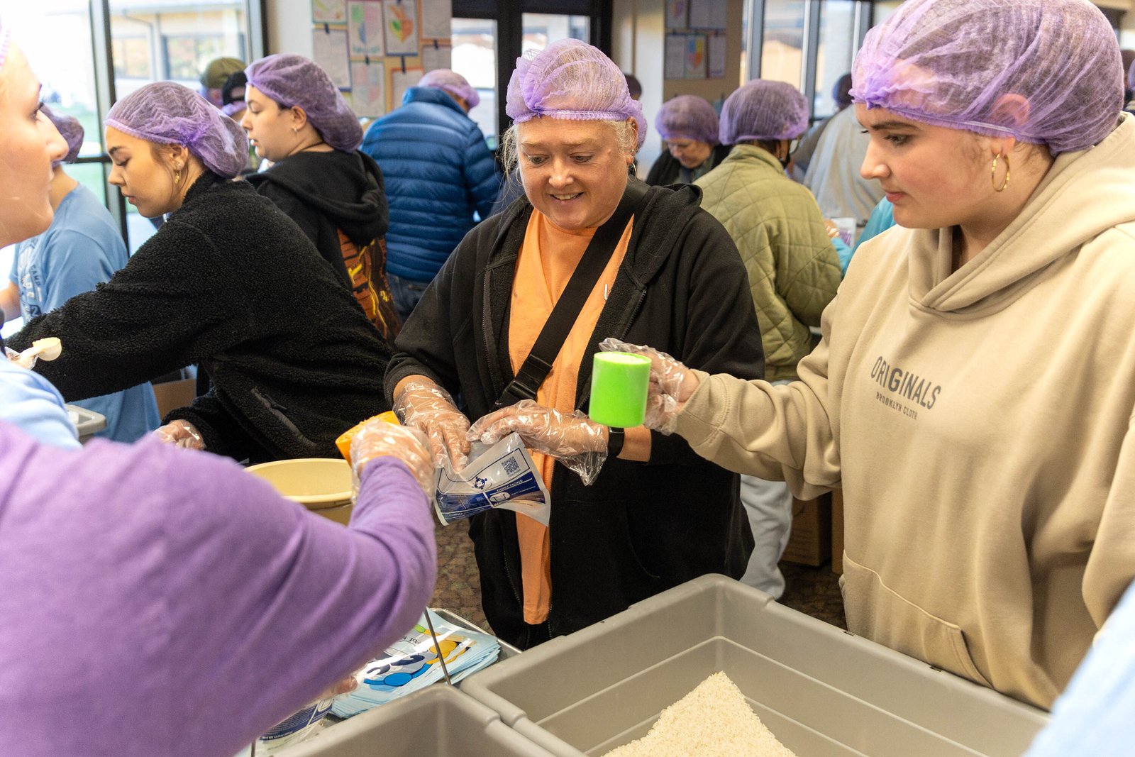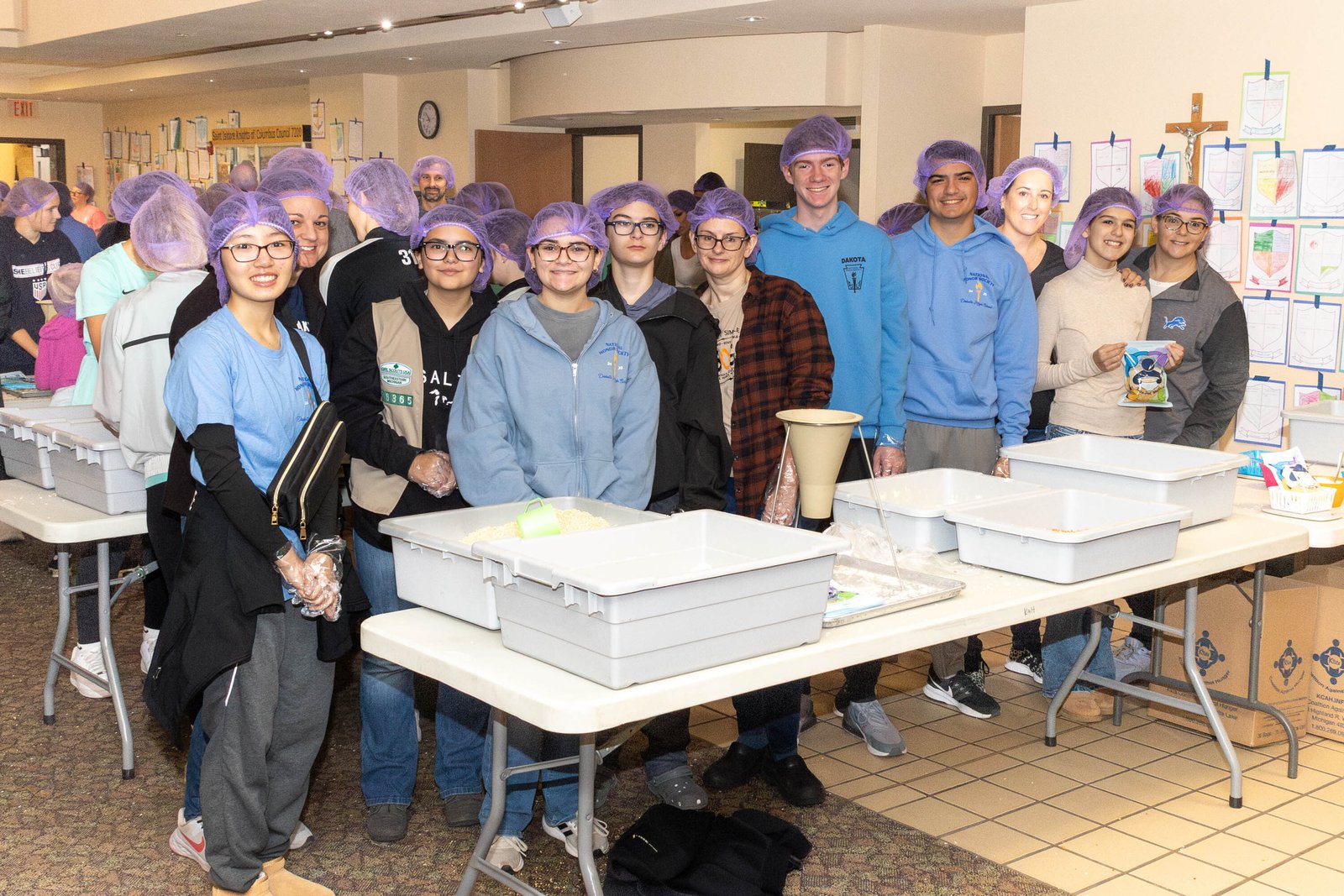 The day before, more than 400 volunteers streamed into the social hall at St. Isidore Catholic Church in Macomb to pack the meals. Parishioners from St. Isidore and other churches in the Disciples Unleashed Family of Parishes were joined by members of local Kiwanis and Key Clubs, who supported the effort with funding as well as volunteers. There were high school honor societies from Dakota High and Austin Catholic, and dance teams wearing matching jackets. There were individuals alongside entire families, and groups of friends who wanted to help others in a tangible way.