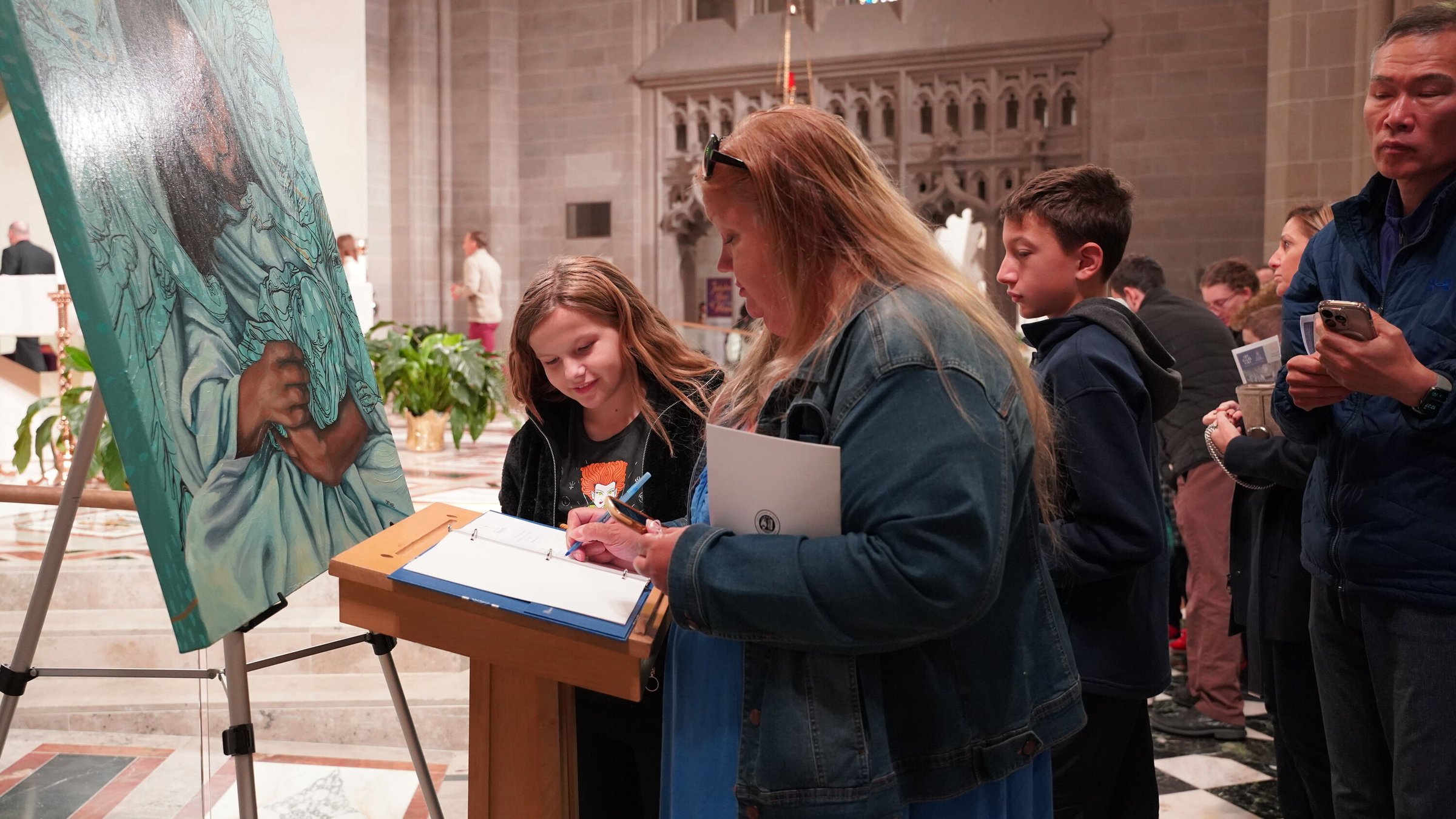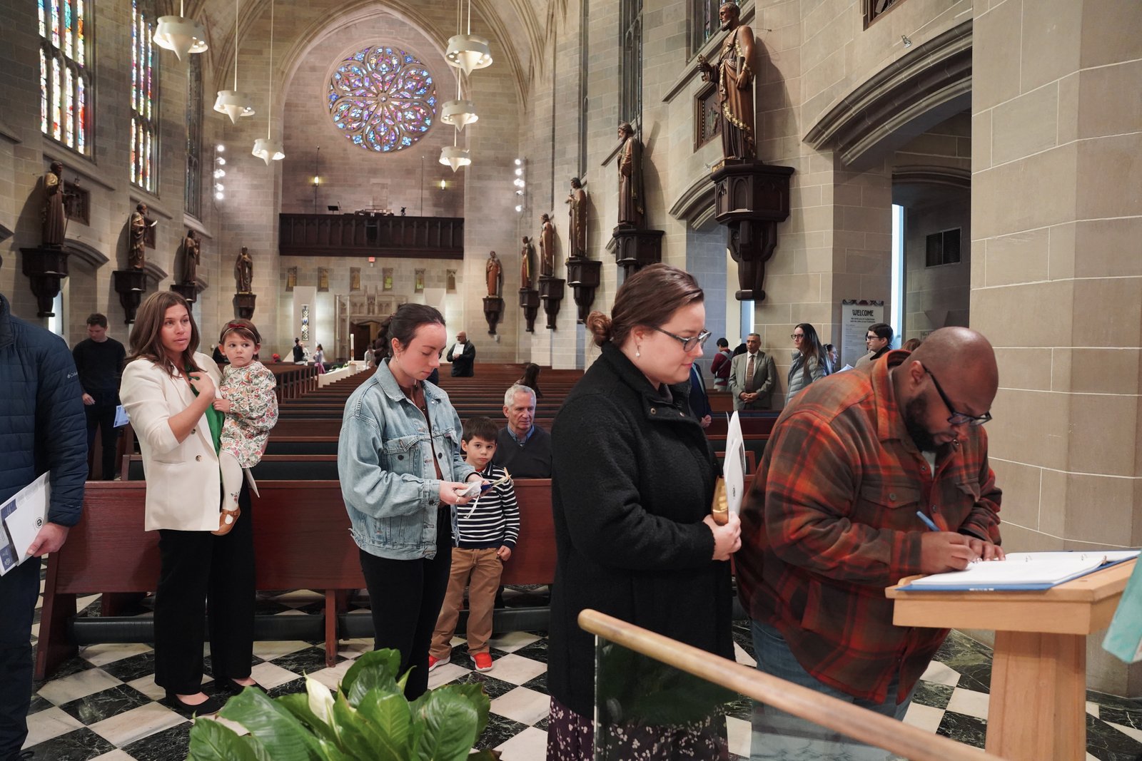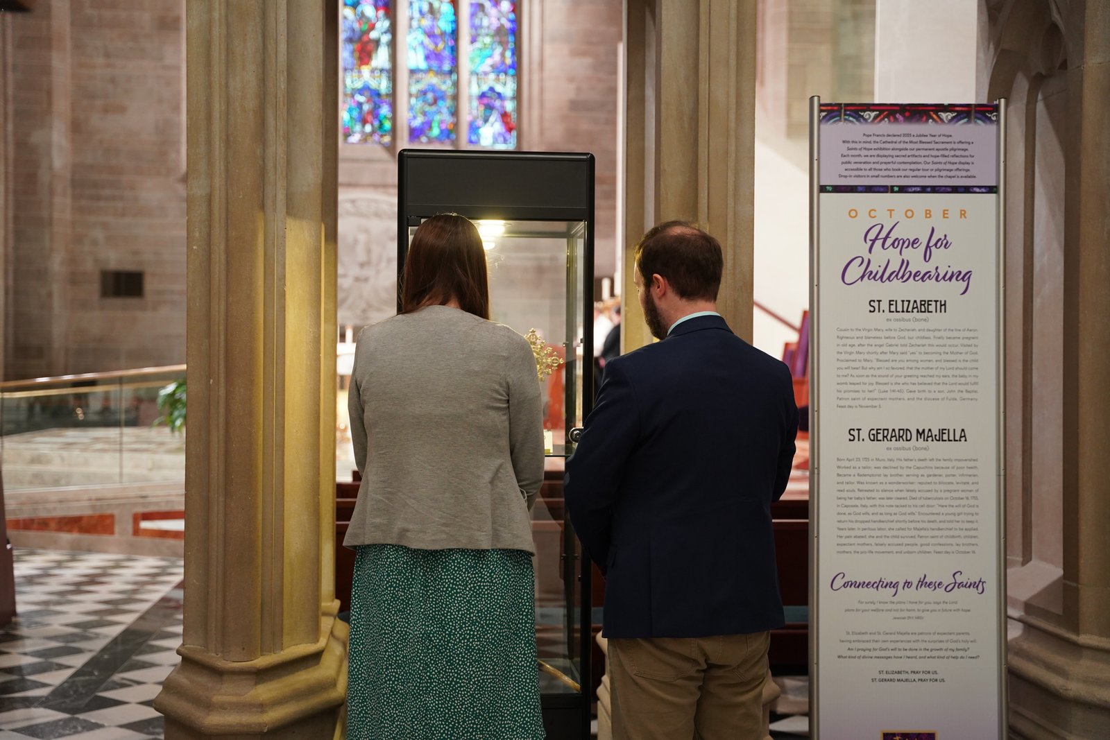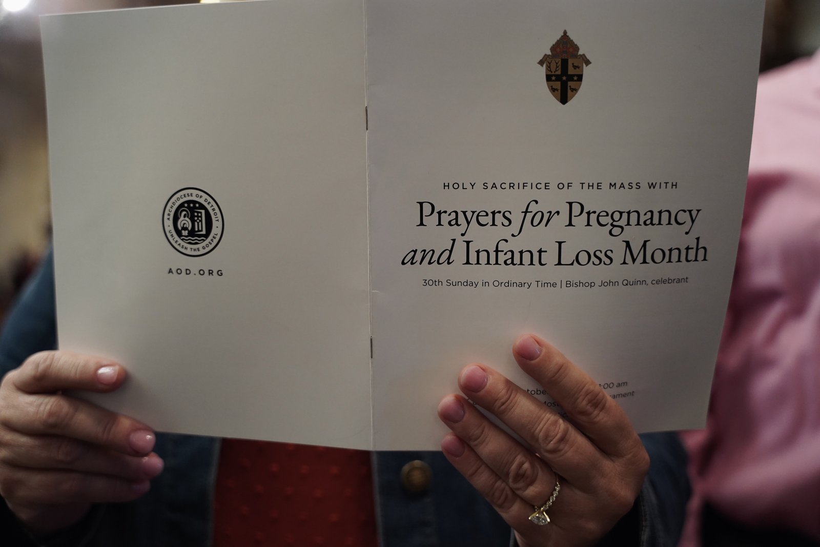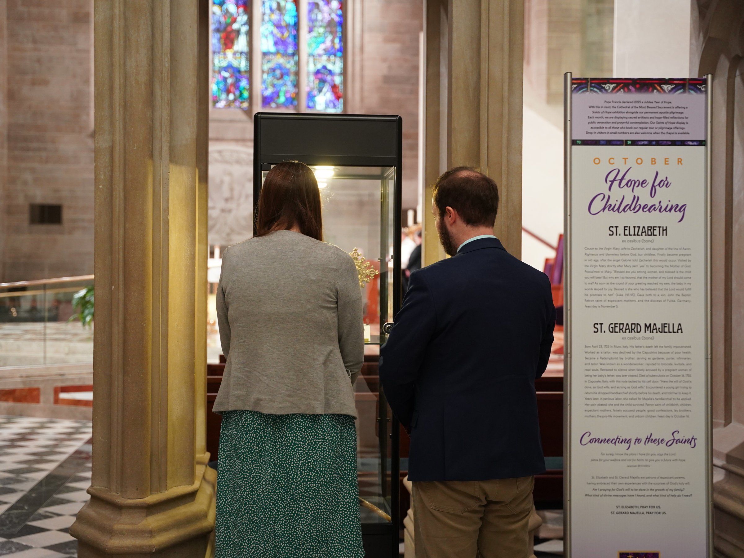 During the Mass, participants were invited to receive a memorial rosary and a special blessing, and to inscribe their children’s names in the Book of Innocents, which is kept year-round in the cathedral's narthex. Afterward, many paused in prayer before a relic of St. Gerard Majella, patron saint of expectant mothers. Couples praying for the gift of children also received prayers and blessings.