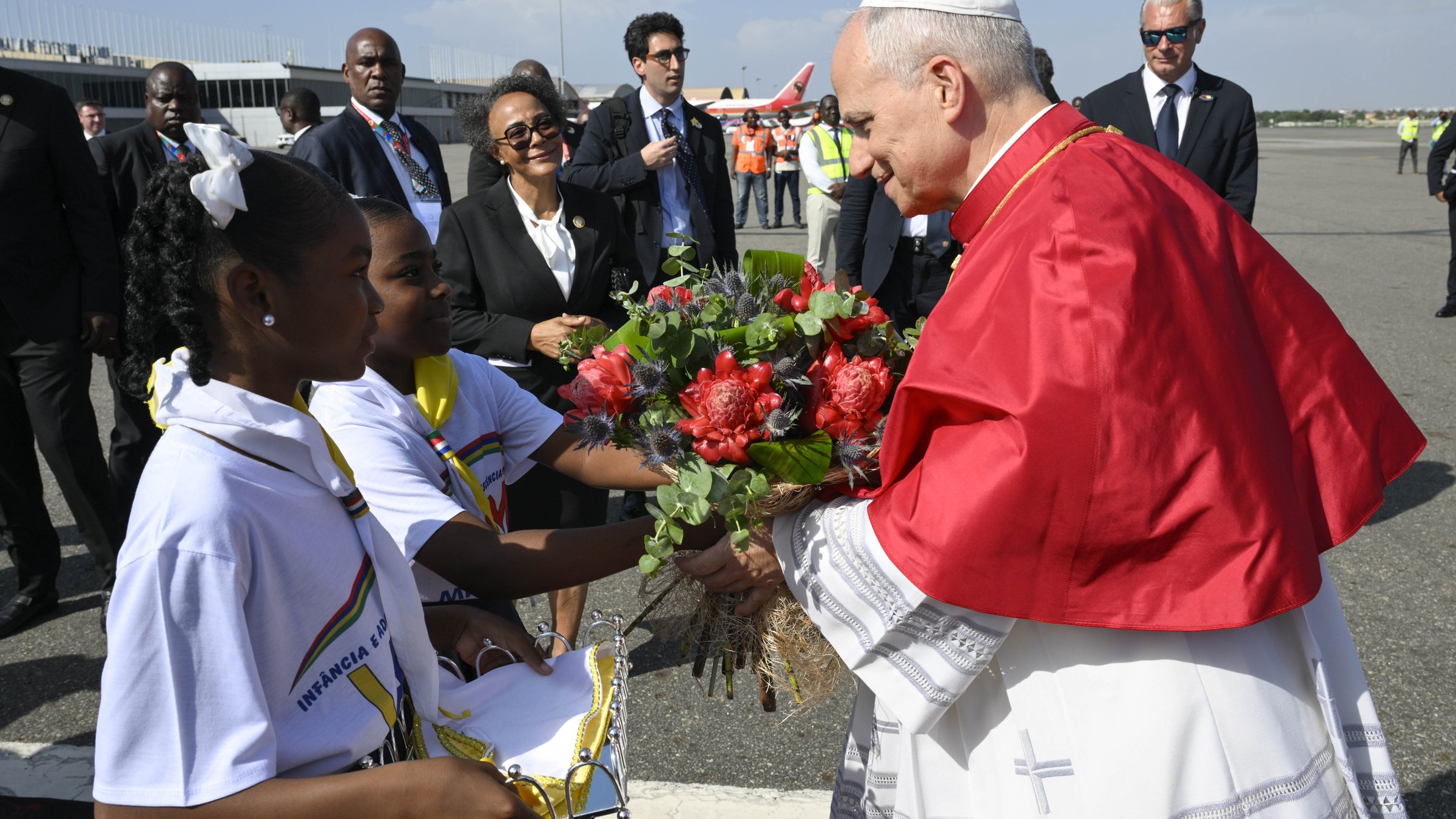 The papal plane, a chartered ITA Airways jet, landed just before 4 p.m. on Saturday afternoon after a two-hour flight from Yaoundé, Cameroon. At the airport, the pope was welcomed by Angola's President João Manuel Gonçalves Lourenço.
