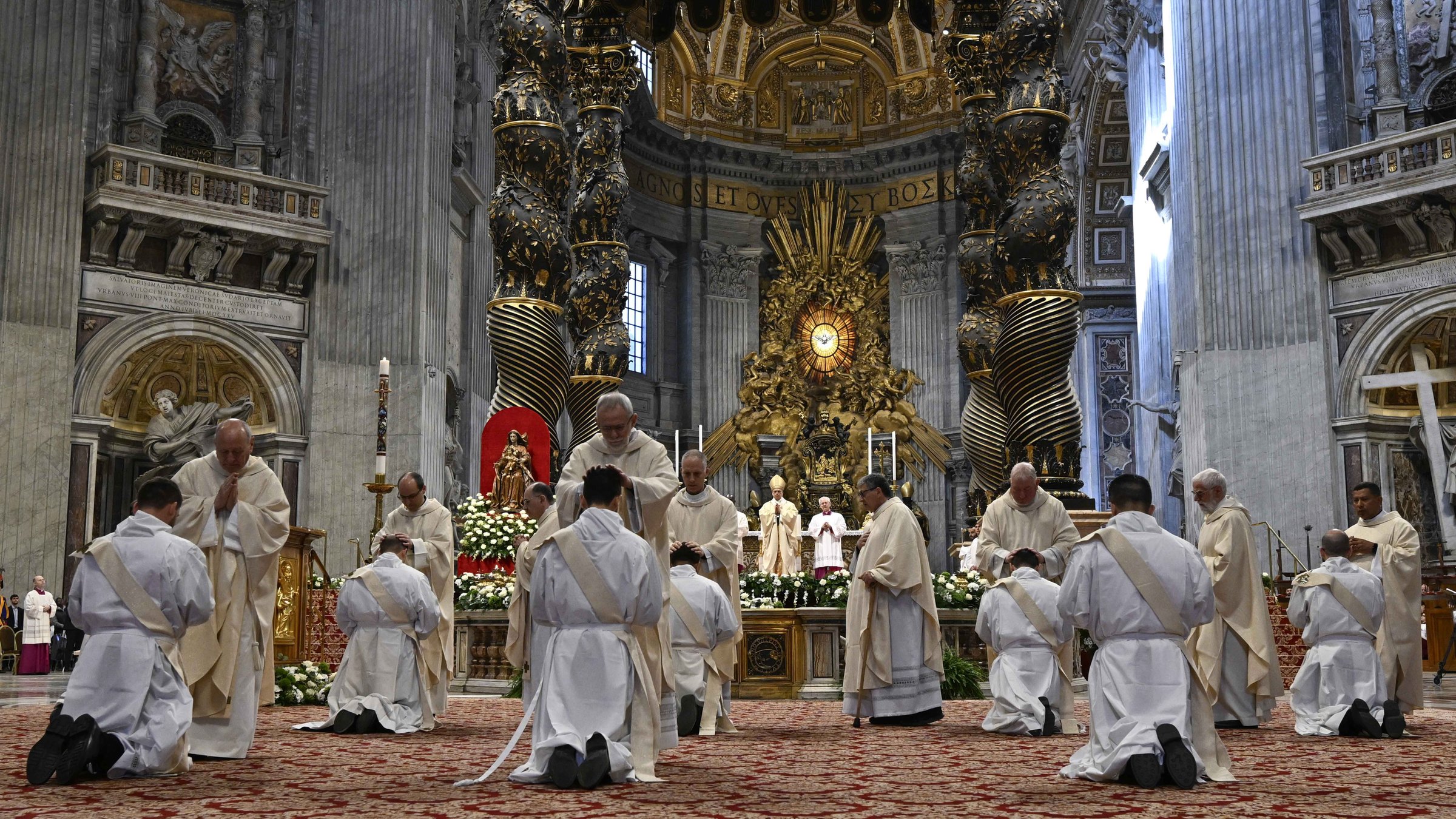 "We see great generosity and enthusiasm in the willingness of these young men whom the Church calls today to be ordained as priests," the pope said. "As a numerous and diverse community gathered around the one Master, we feel a presence that renews us. It is the Holy Spirit who unites people and vocations in freedom, so that no one lives for themselves any longer."