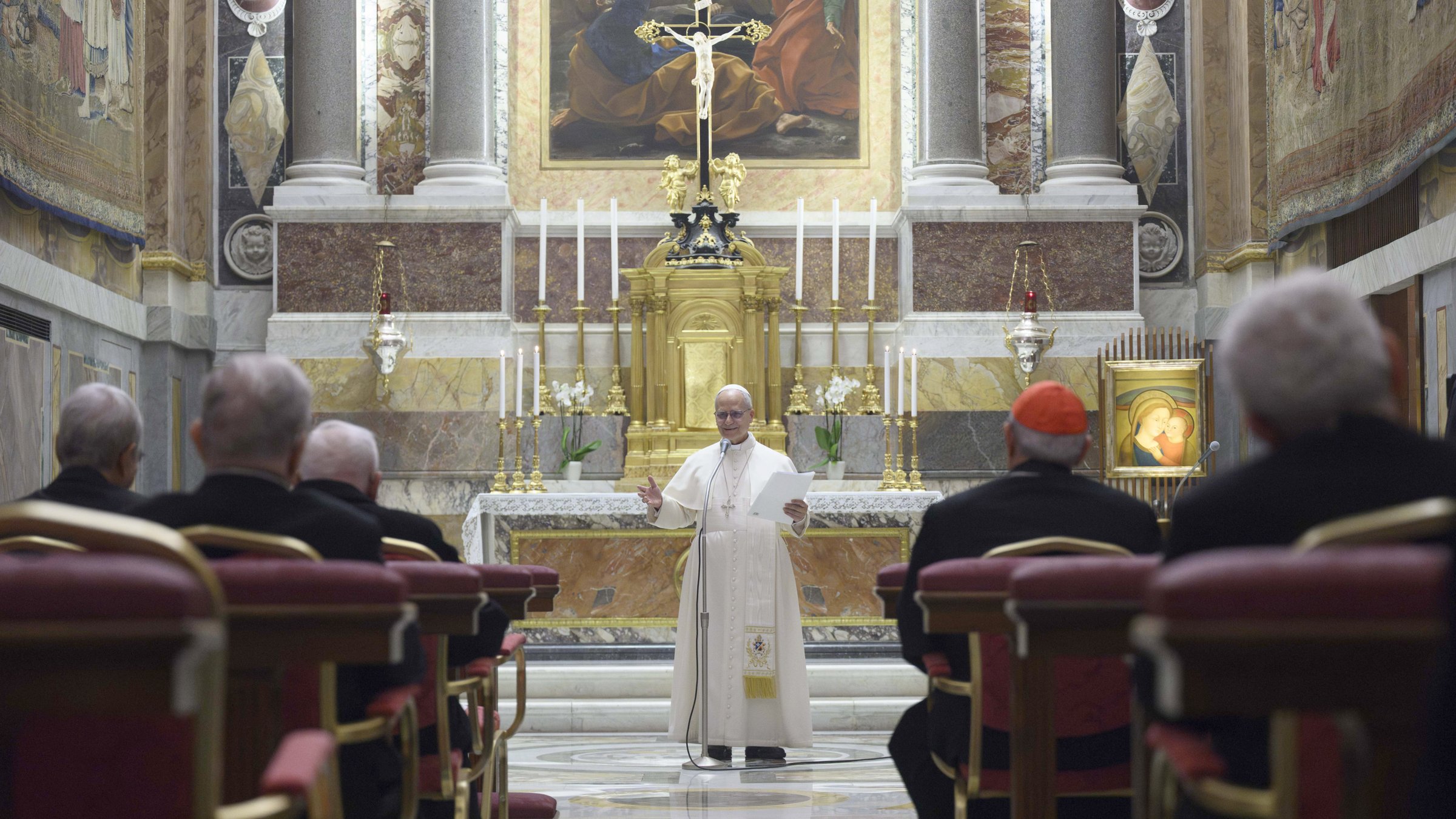 "Speaking of this morning, when he spoke of the election of Pope Eugene III, St. Bernard said: 'What have you done? God have mercy on you,'" Pope Leo said, reflecting on the day of his own election -- May 8, when cardinals "were gathered here for the Eucharistic celebration" -- in the same Pauline Chapel of the Apostolic Palace as the retreat took place.