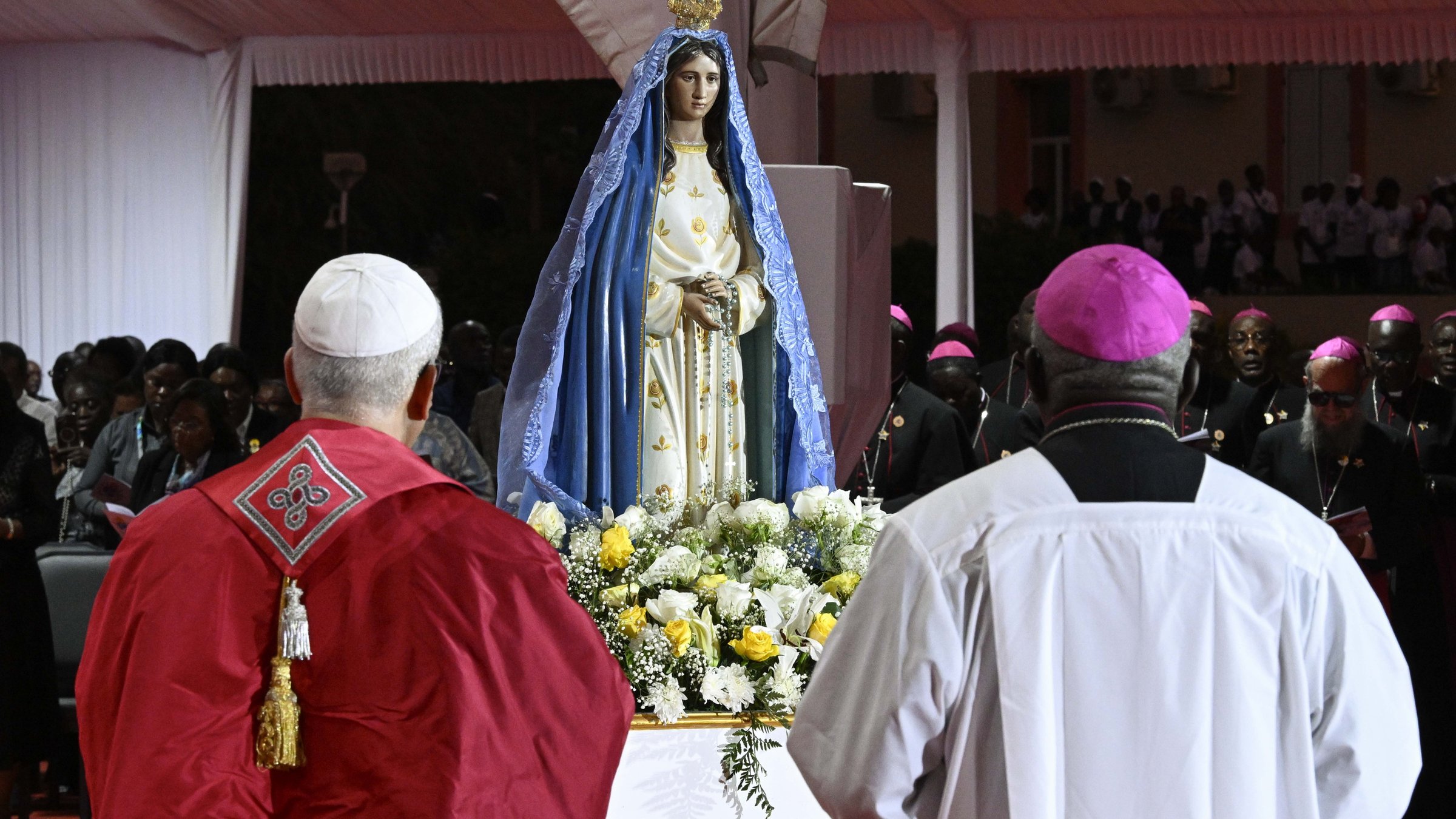 Pope Leo reflected on how the faithful had over the centuries spontaneously renamed the shrine "Mama Muxima," calling it "a beautiful title, which makes us reflect on the heart of Mary: a pure and wise heart, capable of treasuring and pondering the extraordinary events in the life of the Son of God."