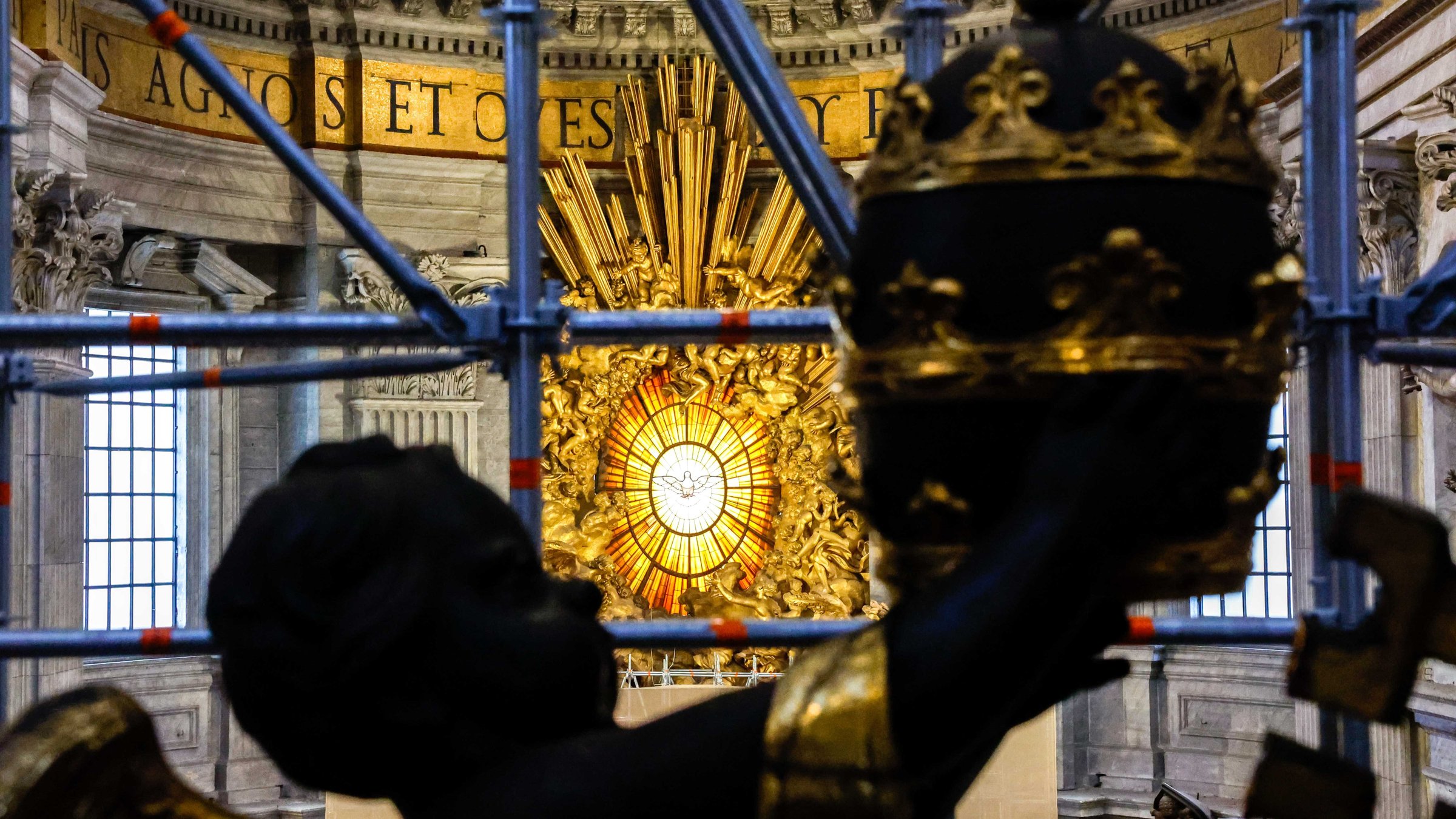 Visitors to the basilica would also see Bernini's baldachin, "which now shines forth in all of its original beauty," and, in the apse of the basilica, "Bernini's beautiful bronze monument protecting the Cathedra (Chair) of St. Peter, which was renewed at the same time," he said.
