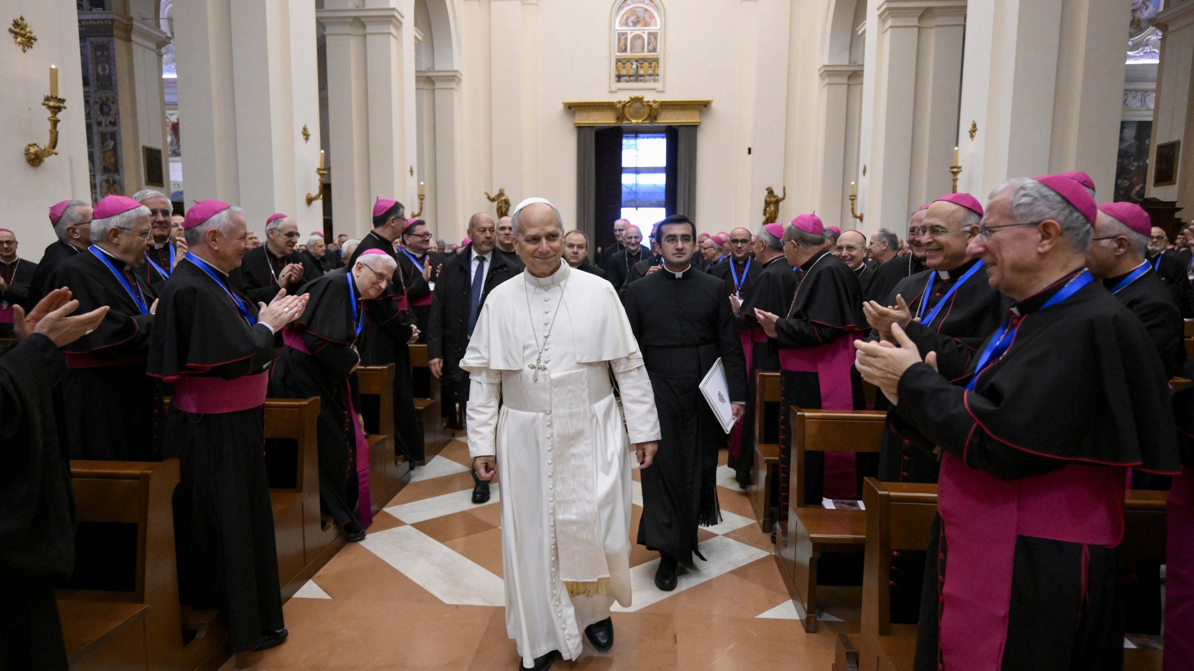 Pope Leo's talk to the bishops focused on the Italian church's ongoing synod process. But he also spoke of practical matters, including the need to continue combining smaller Italian dioceses and indicating that he would be accepting more bishops' resignations when they reached the mandatory retirement age of 75 than Pope Francis did.