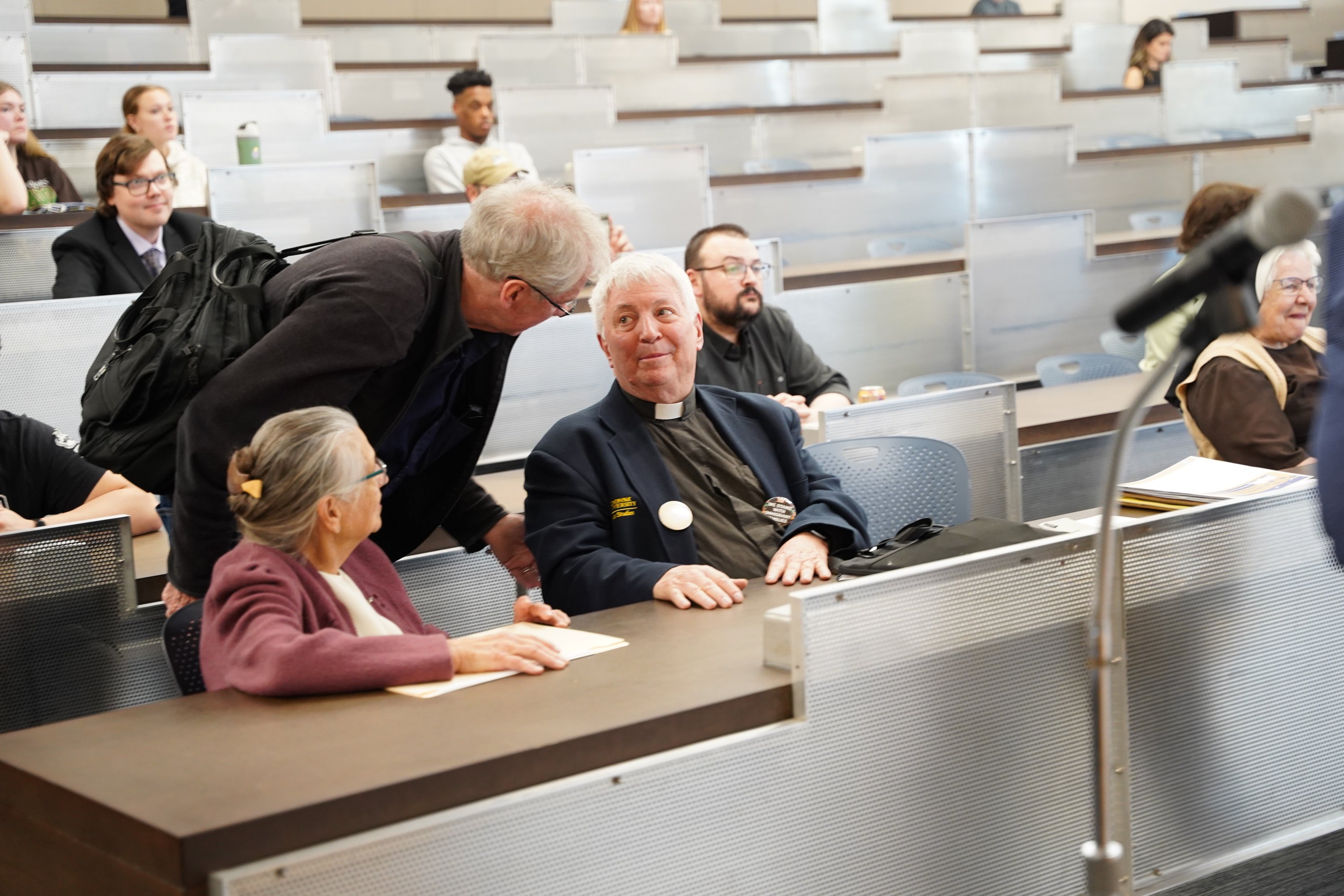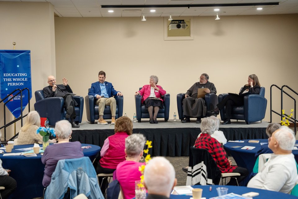 Fr. Charles Morris, a priest of the Archdiocese of Detroit who has served on the faculty of Madonna University since 2010, presented research alongside Elaine Hockman, Ph.D., a specialist in research design, measurement, and statistical analysis at Wayne State University; and Sofia Qureshi, a Michigan native pursuing a Bachelor of Arts in biology at Boston University, during the Madonna University Center for Research's 12th annual Symposium for Research, Scholarship and Creativity.