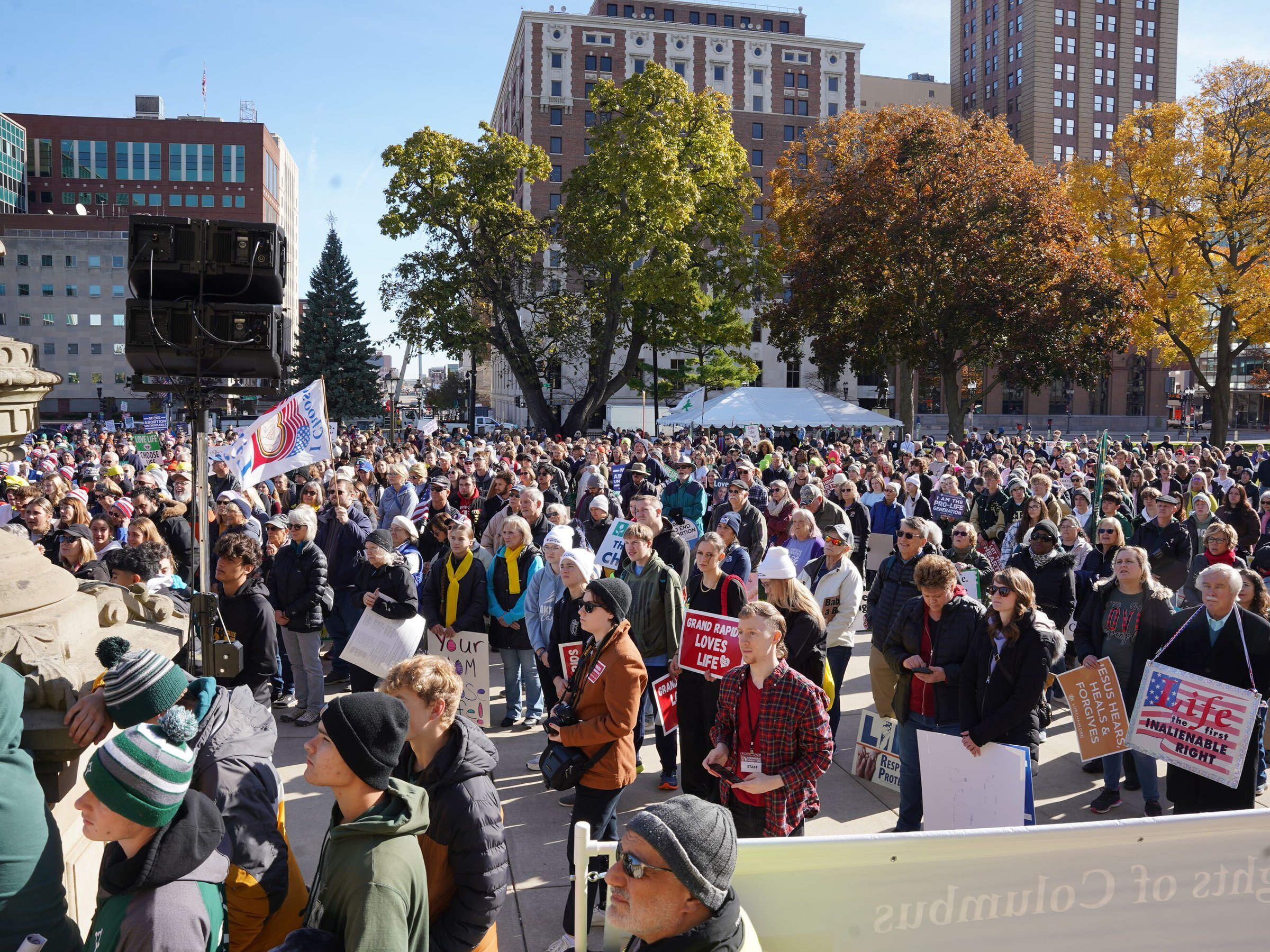 “I hope our friends in the news media who are here with us today — and we’re so honored to have them — I hope they report the turnout,” said Amber Roseboom, president of Right to Life-Michigan. “We have thousands — not hundreds — here in Lansing to stand for life today. Praise God for this beautiful weather. But look around; this is the future of the pro-life movement. We stand with, not against, women facing unplanned pregnancies. We offer compassion, the truth in love, hope, including the practical care and support to make a choice for life.”