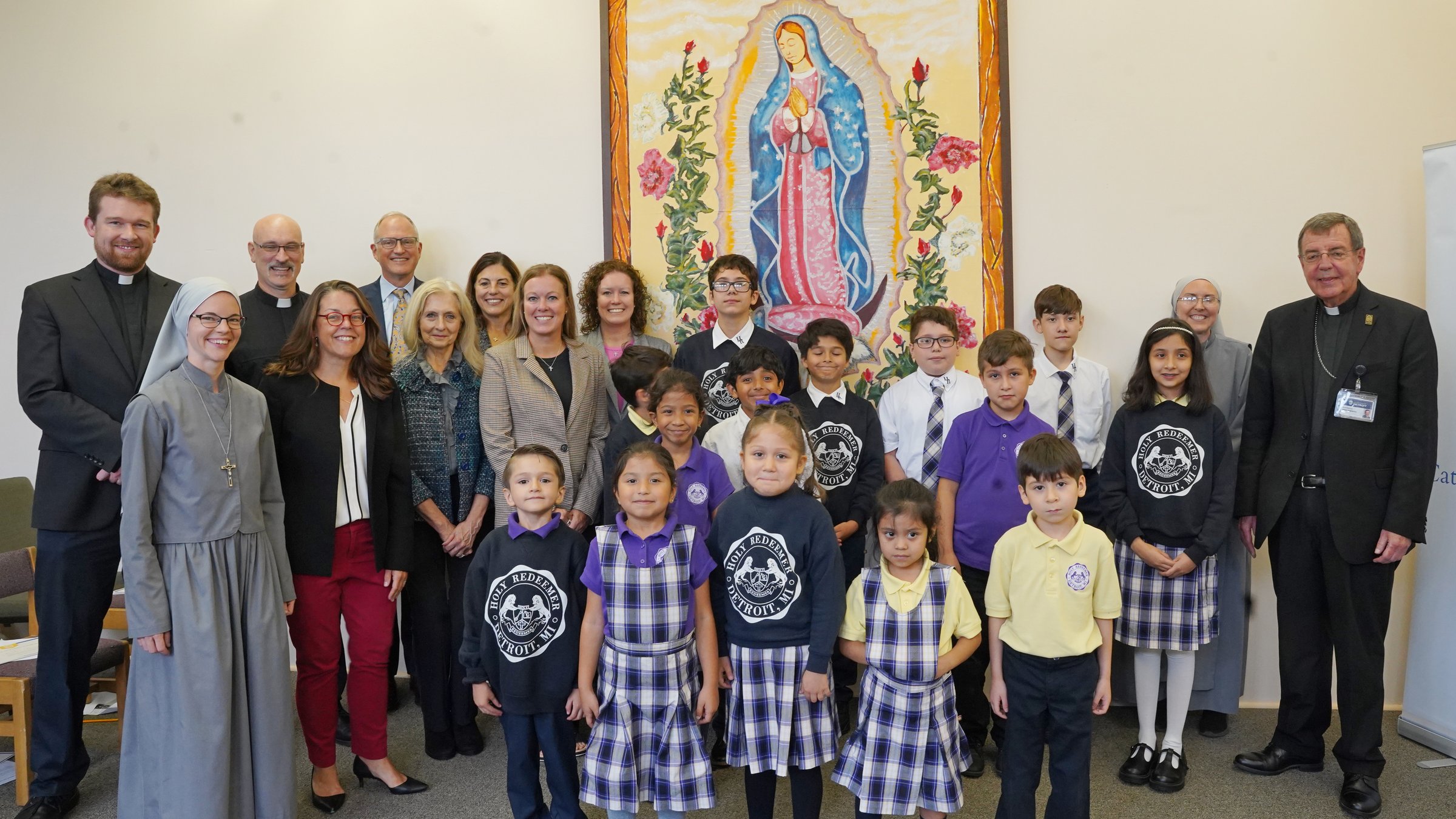 Holy Redeemer students sang for the archbishop and the donors, and sixth-grader Mateo De Jesus Pulido addressed the crowd, thanking the foundation for the scholarships on behalf of his classmates.