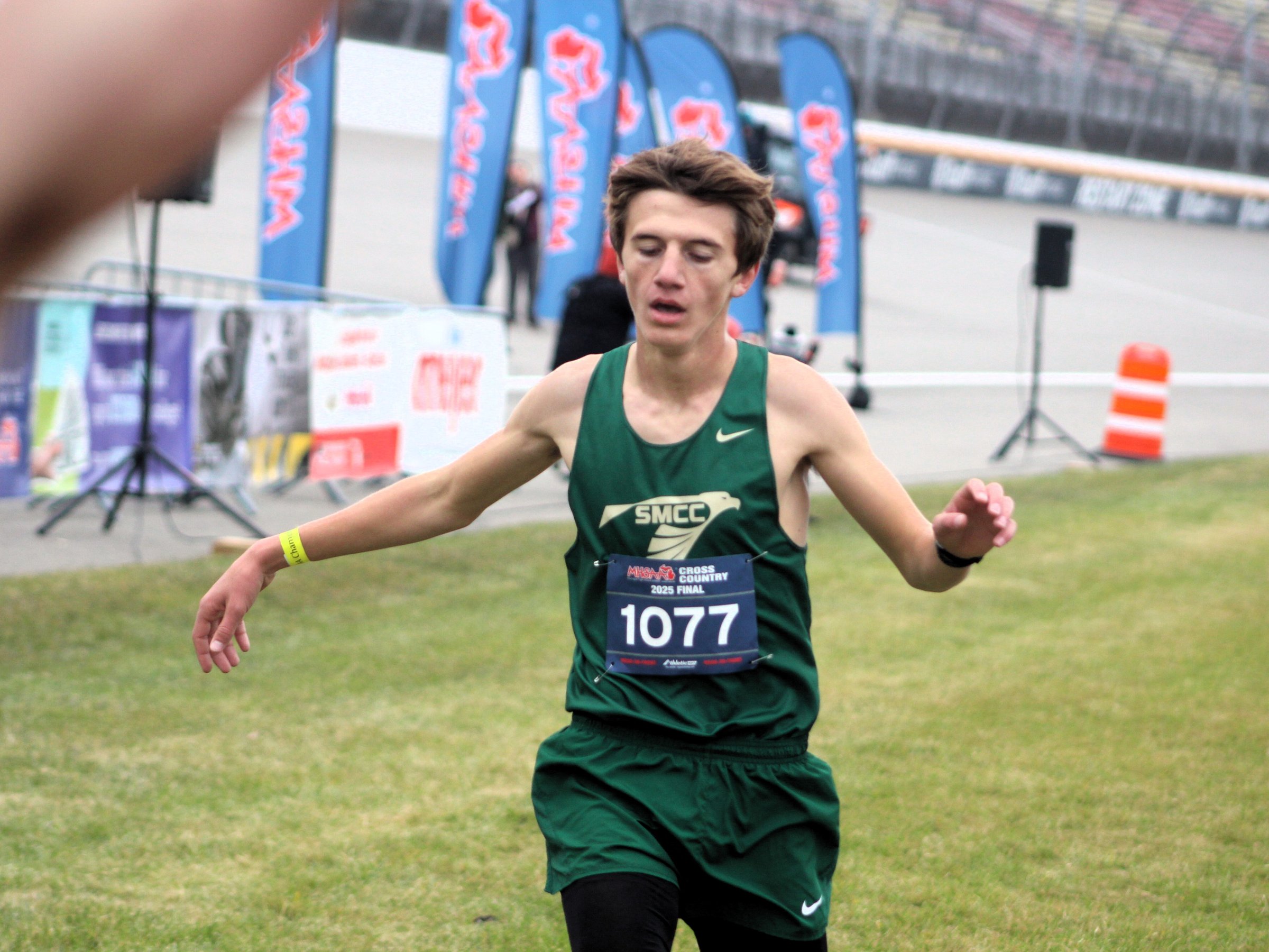 Monroe St. Mary Catholic Central sophomore Christian Craanen nearly equaled Schroeder’s feat before ultimately crossing the finish line in third place. He recorded a personal-best 15:35.8, just five seconds behind winner Hunter Eaton of Charlevoix.