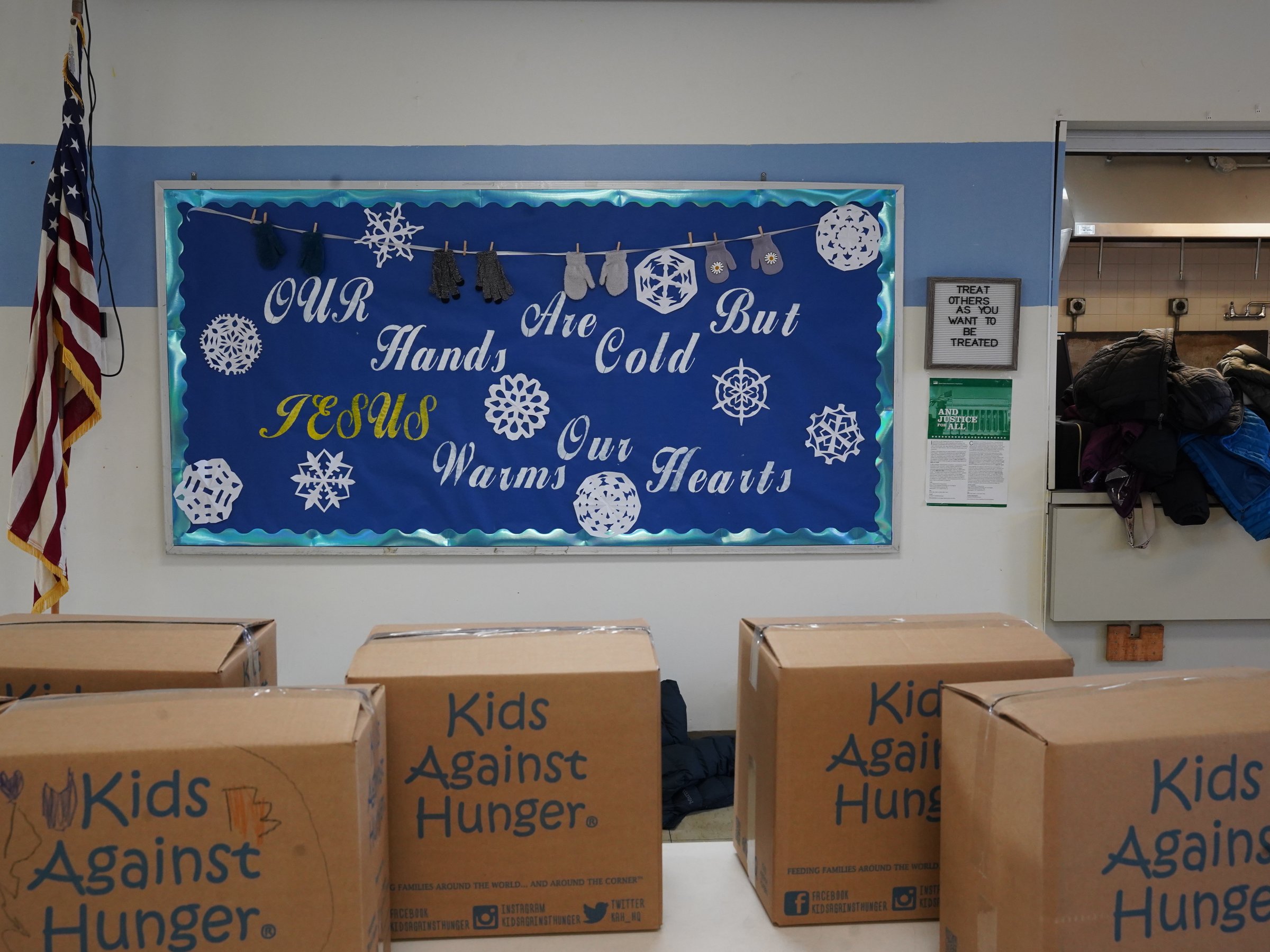 “We’re celebrating what we can do with our hands and feet as the hands and feet of Jesus,” Lenn said. “What I really love about this project is how everyone is getting involved. The kids really take charge and organize the work, we have alumni coming back to St. A’s and working with our current students. We have parents involved in delivering the boxes of food to the pantry. Even the preschoolers are getting involved coloring the boxes that the meals are being placed in. So every single person in this building is involved in one way.”