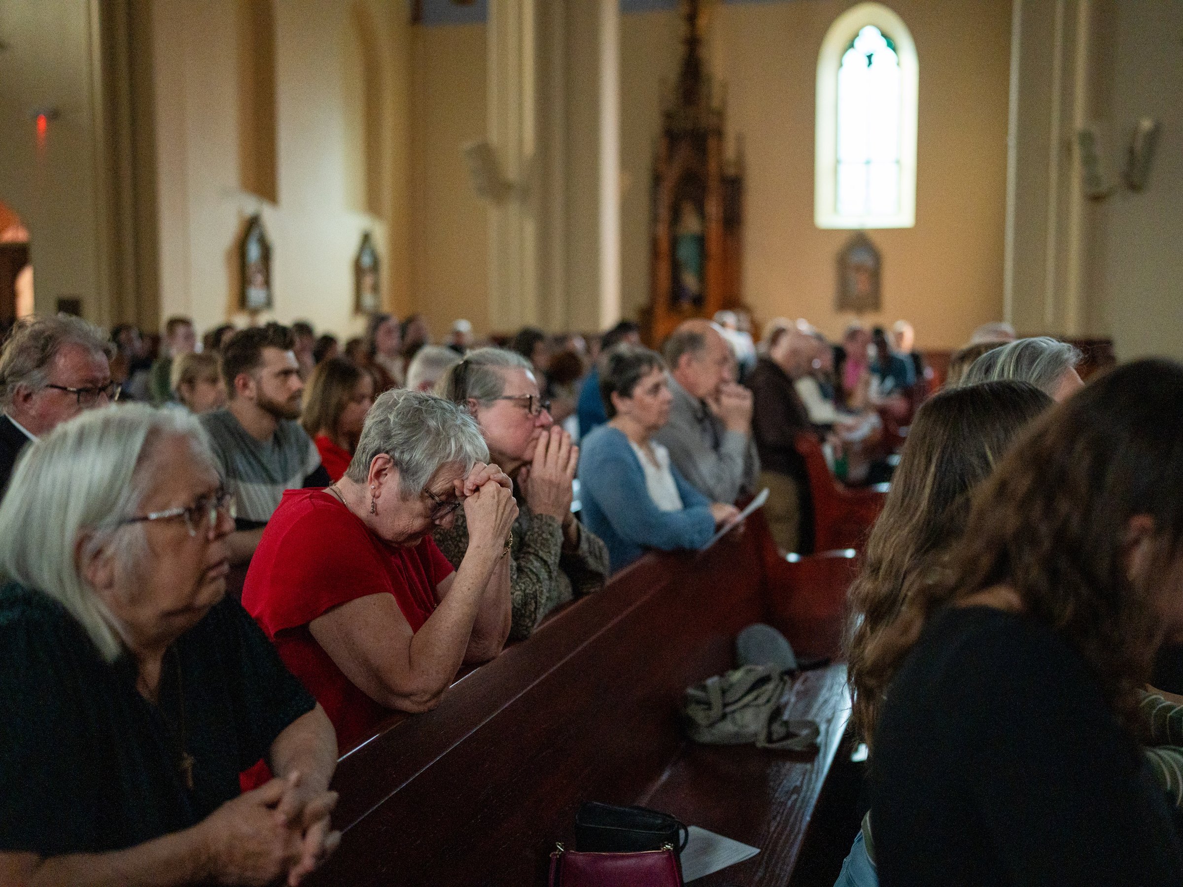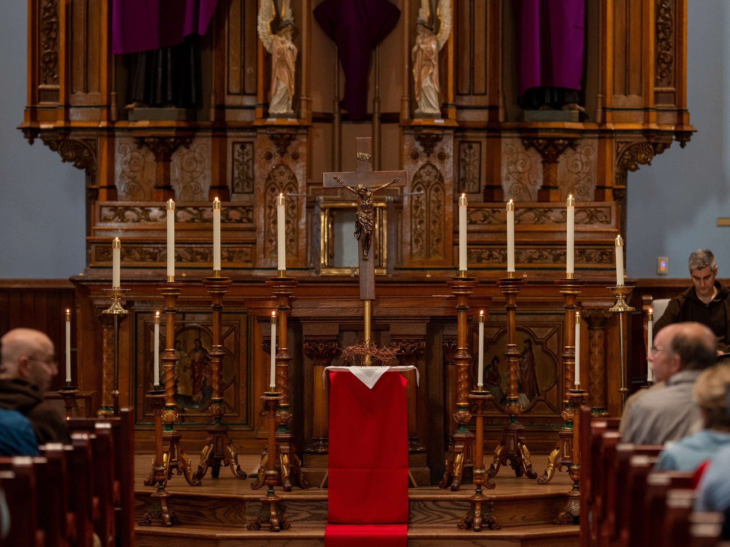 Faithful kneel in silent prayer during a solemn Tenebrae service on Good Friday at St. Bonaventure Monastery in Detroit. (Photos by Naomi Vrazo | Courtesy of the Capuchin Franciscan Province of St. Joseph)