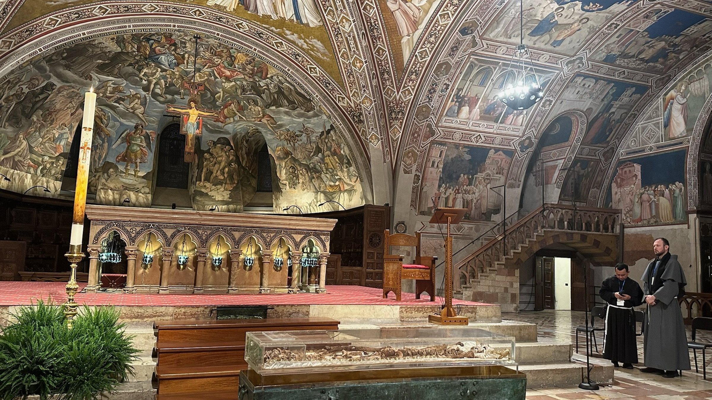 Franciscans from across the world participated in a solemn vespers with the exposed relics beneath the basilica's frescoed ceiling on the evening before the relics opened to the public.