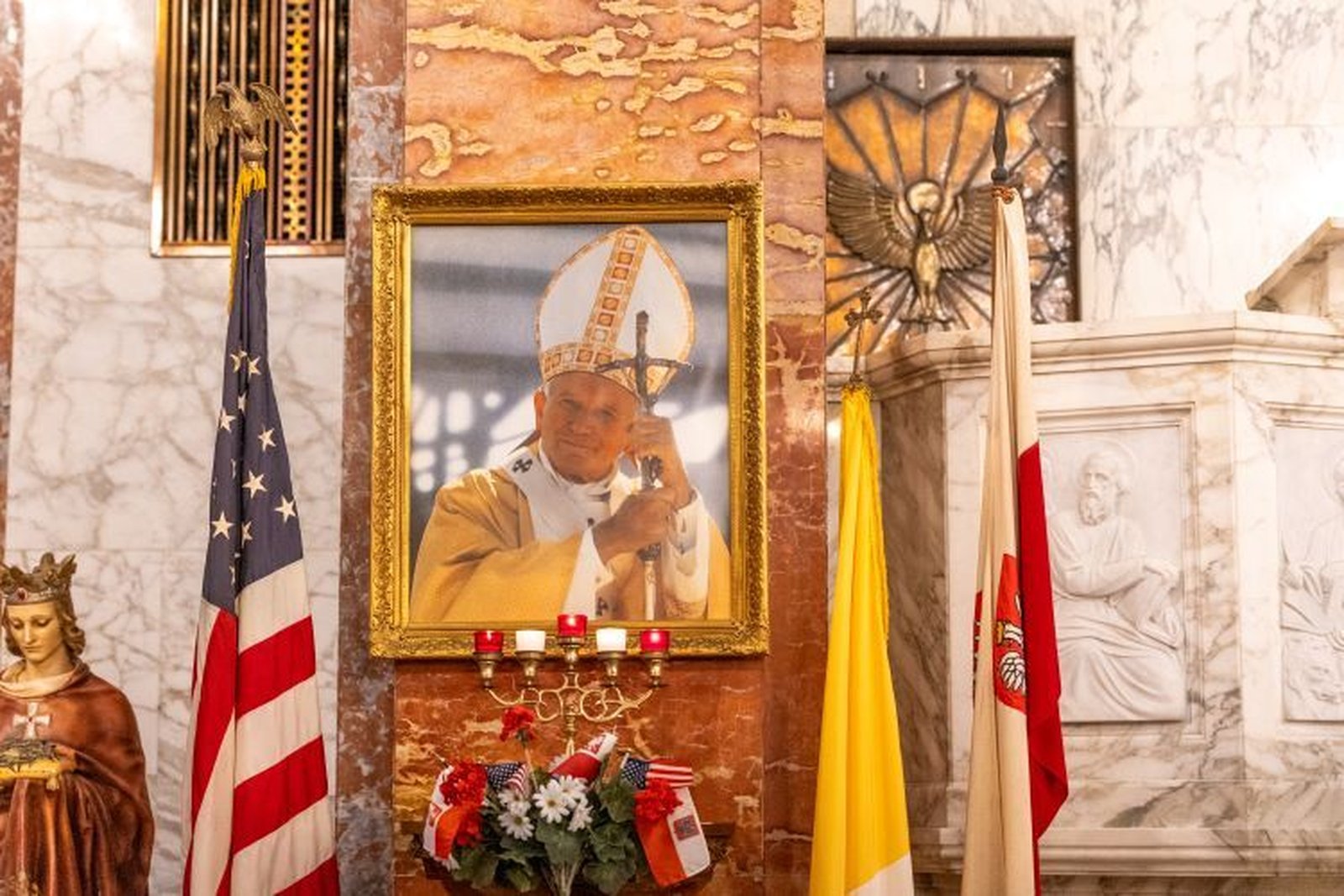 The parish today features statues and devotionals from St. Louis the King and Our Lady Help of Christians churches, along with other windows and shrines commemorating St. John Paul II Parish’s Polish spirituality and heritage.