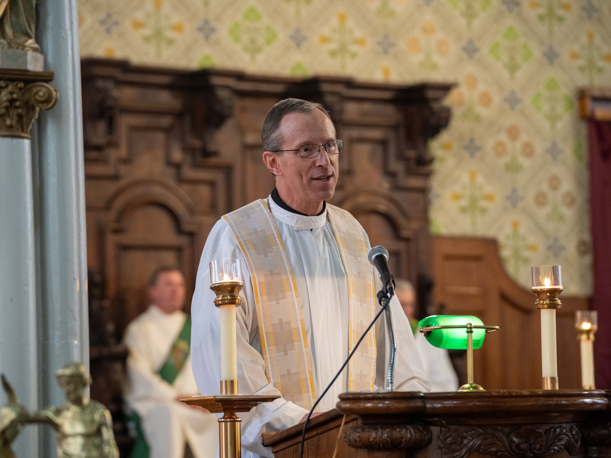 The Gospel reading from St. Luke recounted Jesus asking Simon to cast his nets out in the deep water after Jesus had preached from his boat, which Fr. Herman compared to St. Patrick being asked to return to Ireland after escaping slavery.