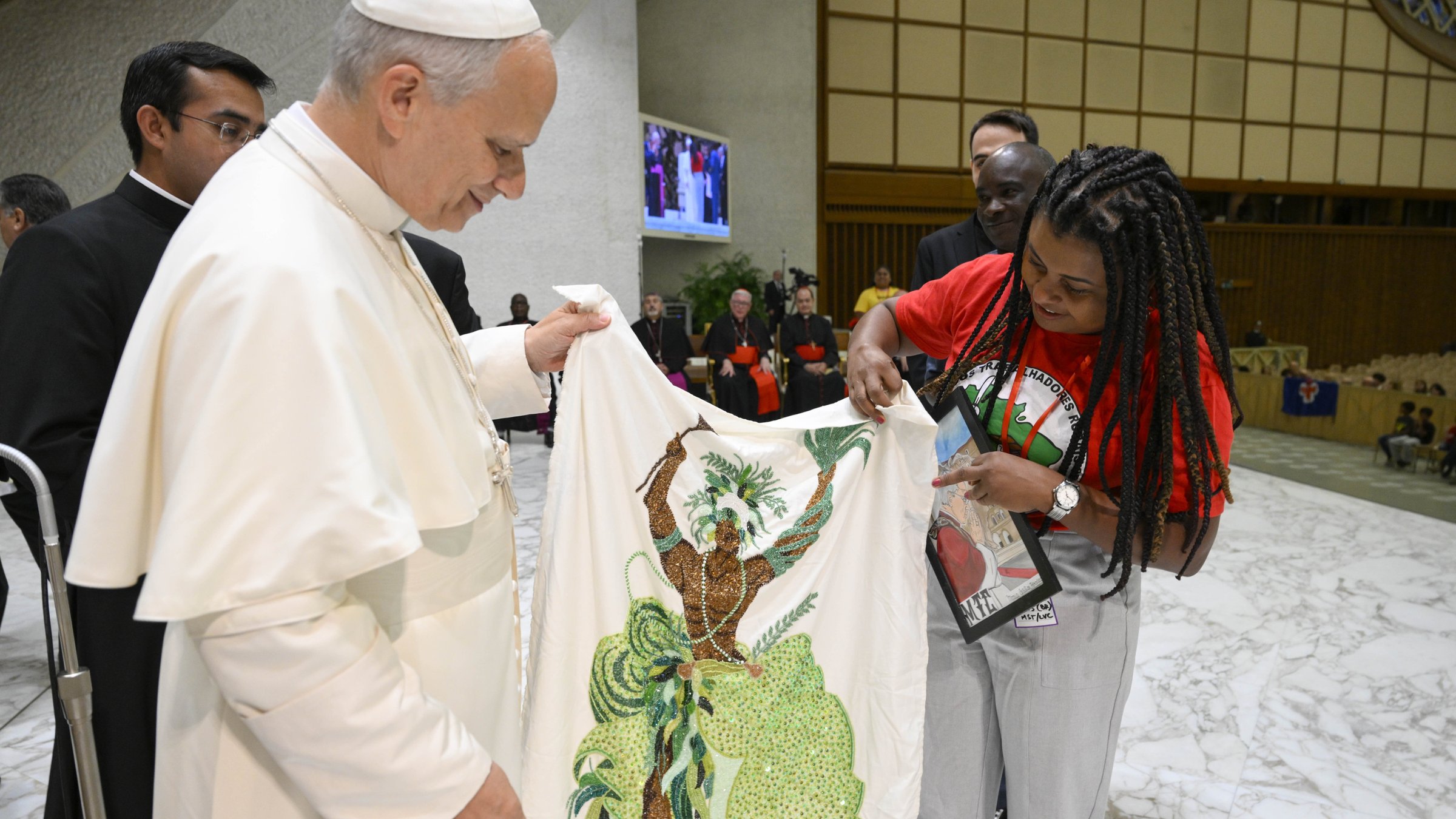Pope Leo greeted the participants and assured them that, like his predecessor Pope Francis, he believed "housing, work and land are sacred rights, it is worthwhile to fight for them, and I would like you to hear me say 'I am here,' 'I am with you!'"
