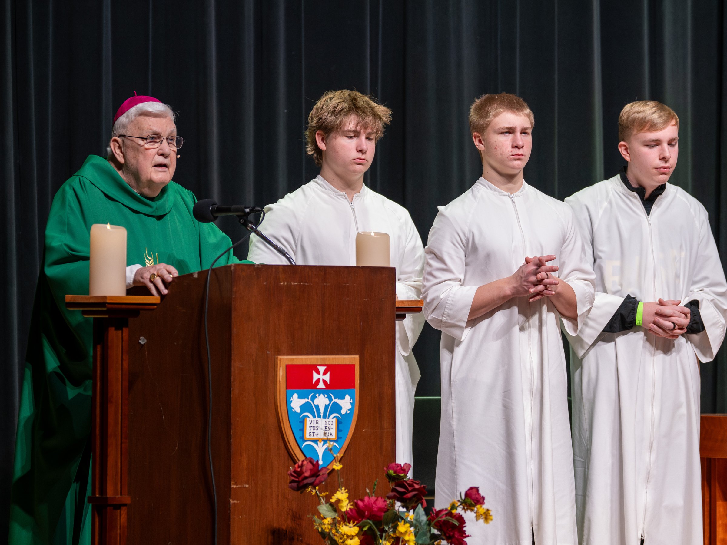 Bishop John M. Quinn, bishop emeritus of the Diocese of Winona-Rochester and a former auxiliary bishop of the Archdiocese of Detroit (2003-08), celebrated Mass with the students.