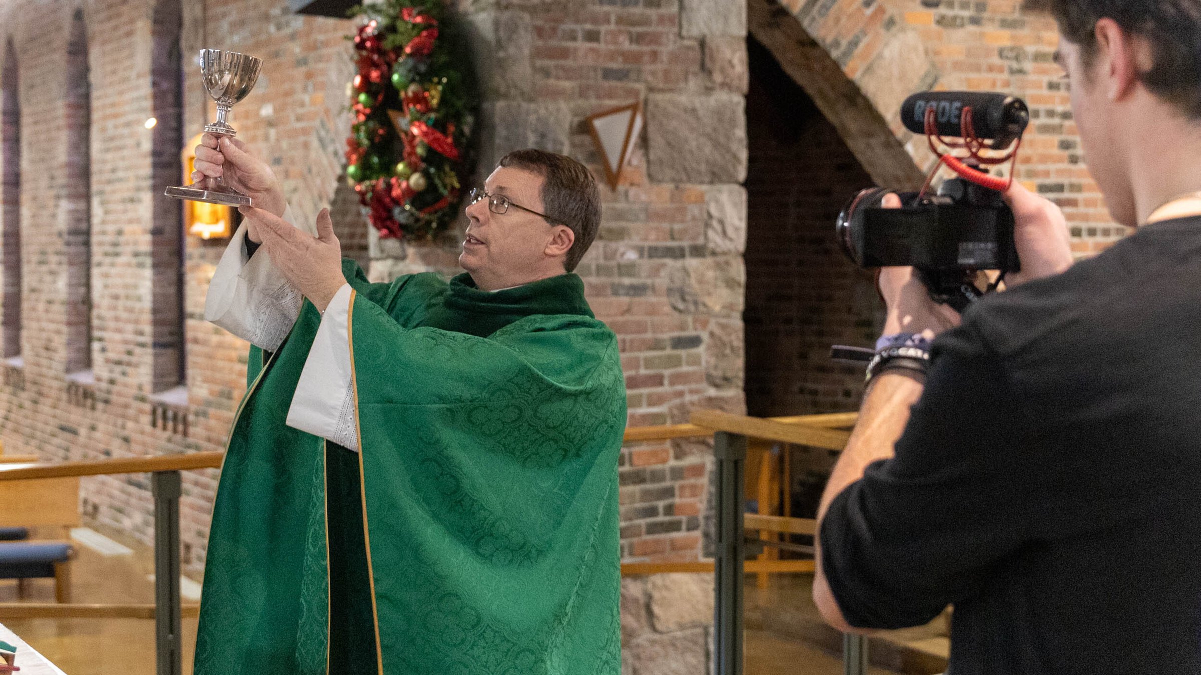 Last summer, just before beginning his senior year, Sasak released a four-part docuseries, “The Life of a Priest.” Each short episode features Fr. Jim Kean, the priest who serves Sasak’s parish, St. Joseph the Worker in Lake Orion.