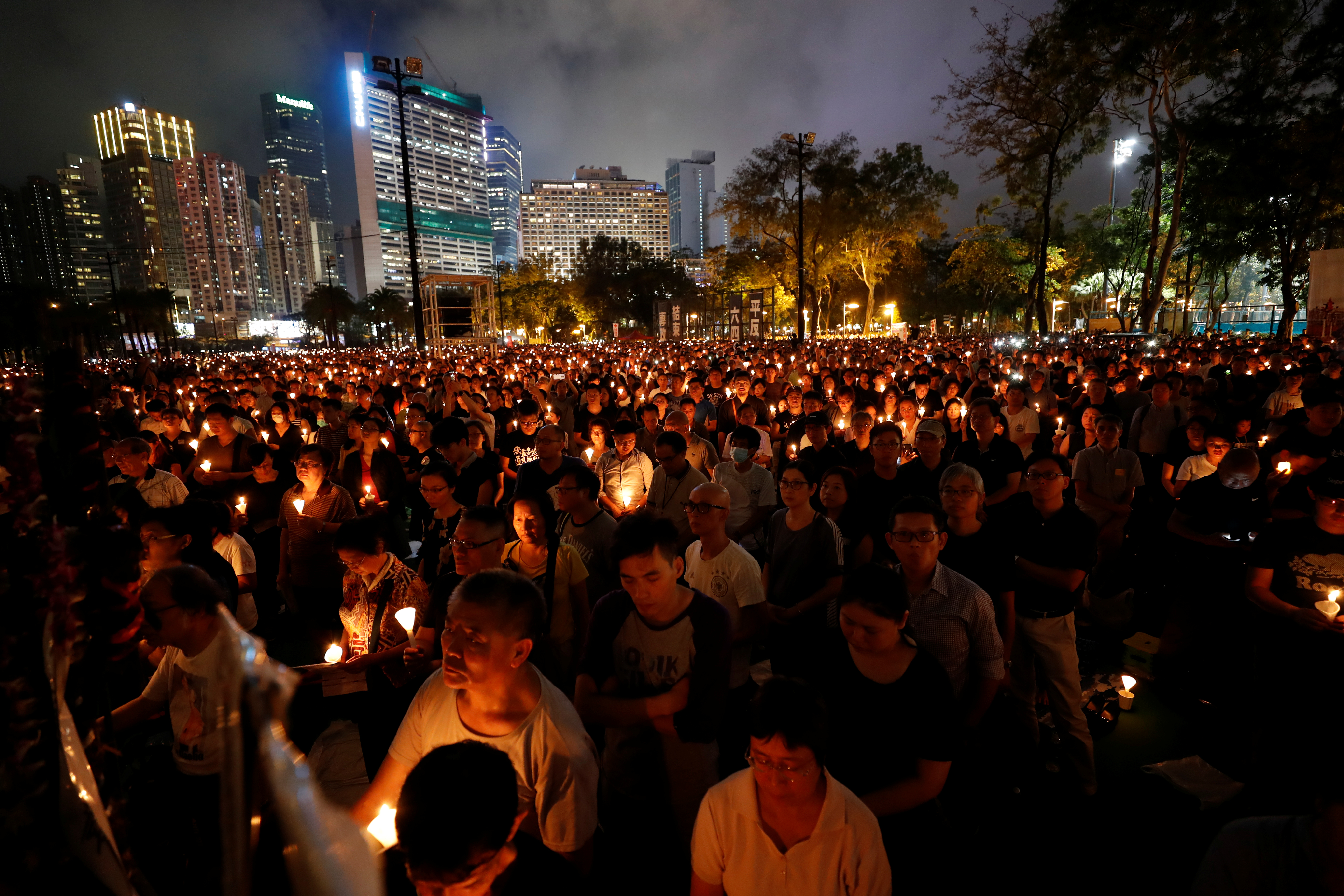 People filled the park plus neighboring roads to remember the bloody crackdown against the pro-democracy student-led movement in Beijing's Tiananmen Square June 4, 1989.