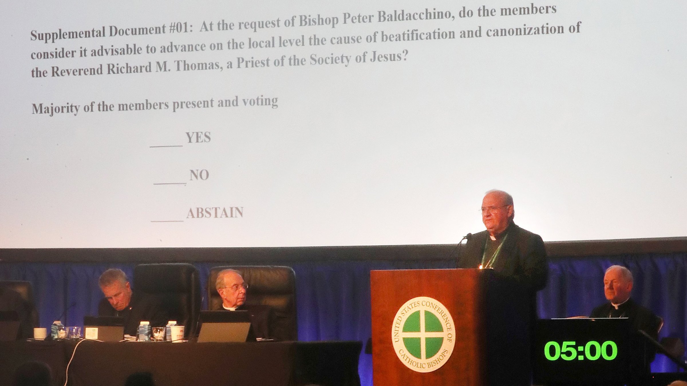BALTIMORE (OSV News) ─ The U.S. bishops voted overwhelmingly Nov. 11 to support the advancement of a canonization cause for Jesuit Father Richard Thomas. The agenda item was presented by Bishop Thomas J. Paprocki of Springfield, Illinois, chairman of the U.S. Conference of Catholic Bishops' Committee on Canonical Affairs and Church Governance. He was joined in the presentation by Bishop Peter Baldacchino of Las Cruces, New Mexico, the diocese in which Father Thomas died on May 8, 2006.