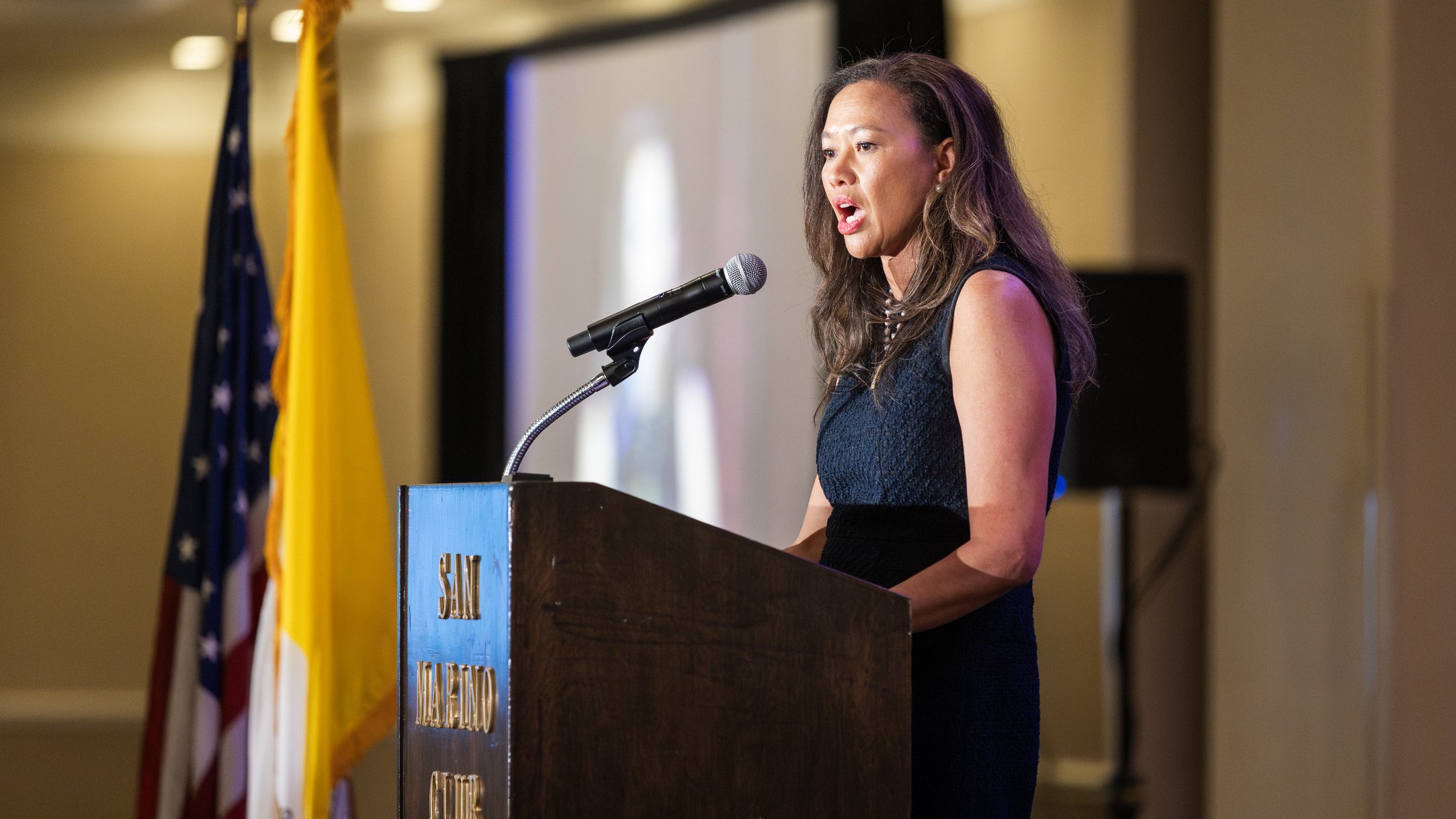 Damoose spoke to 550 attendees at the San Marino Club in Troy, recalling how she was born into difficult circumstances — her birth certificate doesn’t include a name for a father, and she was born amidst the carnage of a war.
