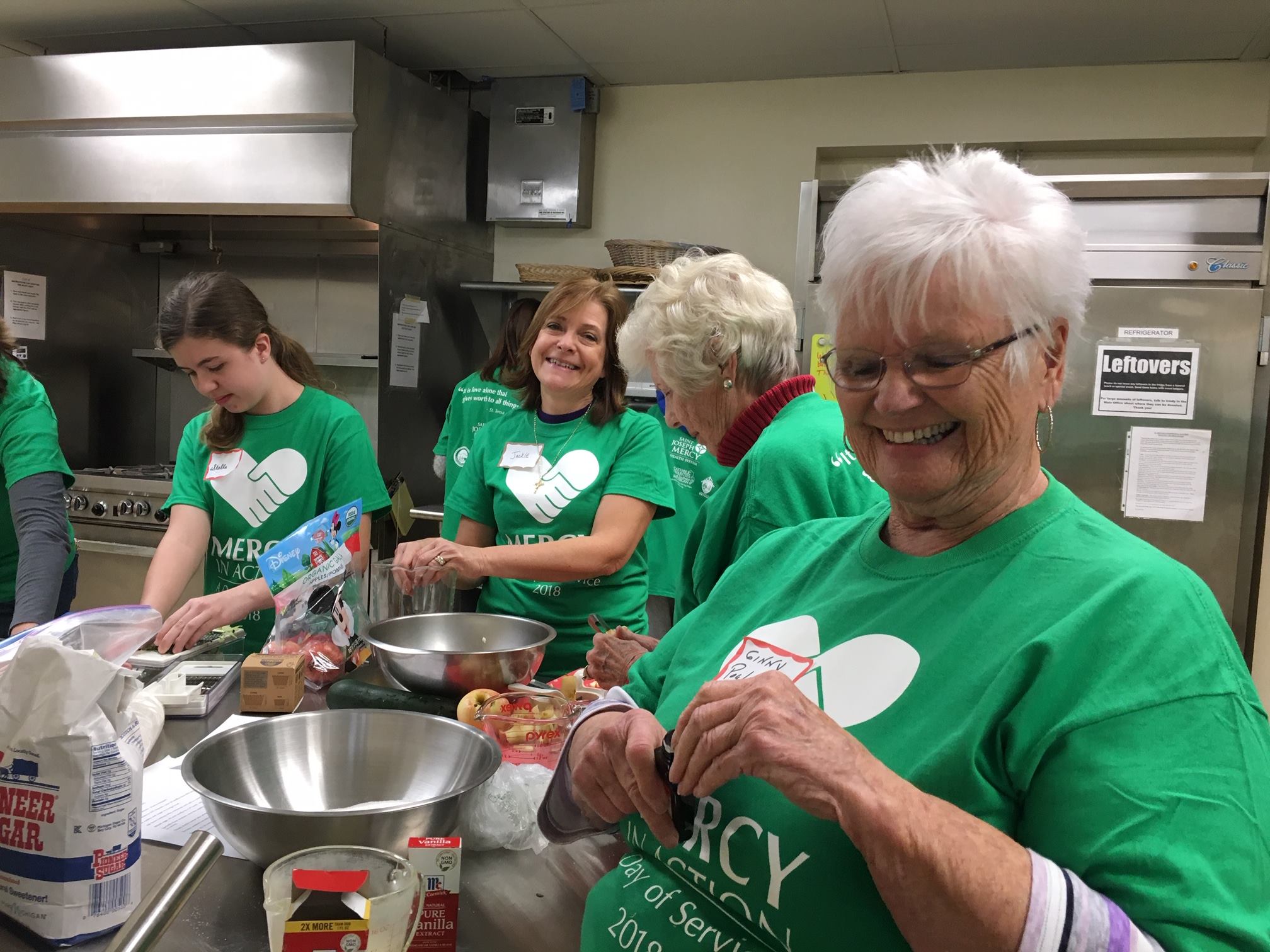 Catholic Charities' event coincided with Make a Difference Day, an annual community service event that takes place nationwide on the fourth Saturday in October. Unlike the secular Make a Difference Day, the Mercy in Action Day of Service included a spiritual component. At St. Jane Frances de Chantal, for example, several volunteers were engaged in Eucharistic adoration on behalf of the volunteers and those being served.