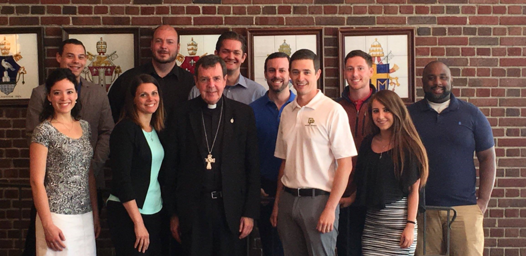 Members of the Young Catholic Professionals Detroit Leadership Team pose with Archbishop Allen H. Vigneron during a meet and greet. YCP Detroit will host its "kickoff" Aug. 1. (Photo courtesy Young Catholic Professionals Detroit)Between work, spending time with friends, seeing the family and figuring out what to do with that mysterious “free time” people keep talking about, incorporating faith into one’s life can be a challenge.